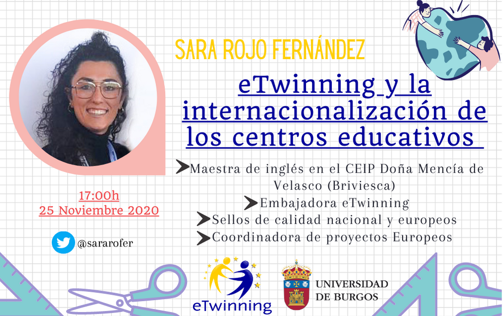 Los estudiantes de la asignatura “Animación a la lectura en inglés en Primaria” de 4º del Grado en Maestro de Educación Primaria (mención en lengua inglesa) participaron ayer en la charla “eTwinning y la internacionalización de los centros educativos”, impartida por Sara Rojo Fernández, maestra de inglés en el CEIP Doña Mencía de Velasco (Briviesca, Burgos)