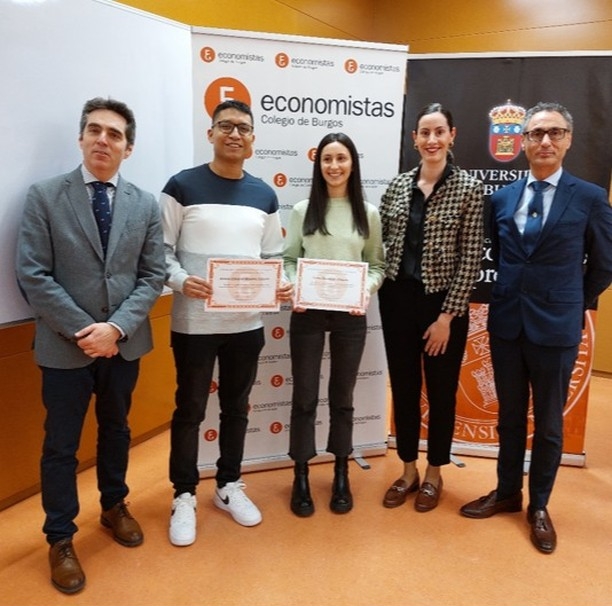 Carlos Alonso de Linaje, decano del Colegio de Economistas de Burgos; Beatriz Monasterio Poza, representante de Jóvenes Economistas de Burgos; y Juan Bautista Delgado García, decano de la Facultad de Ciencias Económicas y Empresariales, hicieron esta semana entrega del premio en la Facultad de Ciencias Económicas y Empresariales. El objetivo de esta convocatoria es fomentar la creatividad e innovación entre jóvenes economistas, además de estimular el desarrollo de soluciones económicas sostenibles y socialmente responsables.