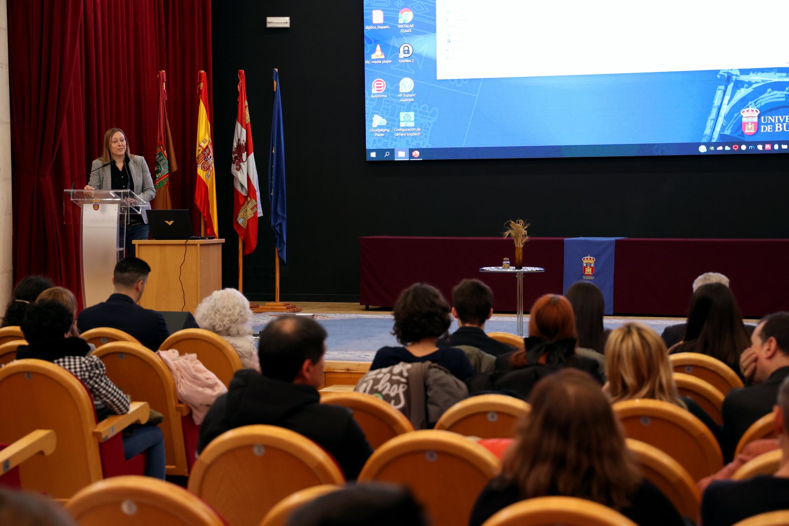 La vicerrectora de Estudiantes de la Universidad de Burgos, Verónica Calderón Carpintero, presidió el acto acompañada de Francisco Javier Seara Ruiz, de la Dirección Provincial de Burgos, y María de la Zarza Álvarez, directora del IES Félix Rodríguez de la Fuente.