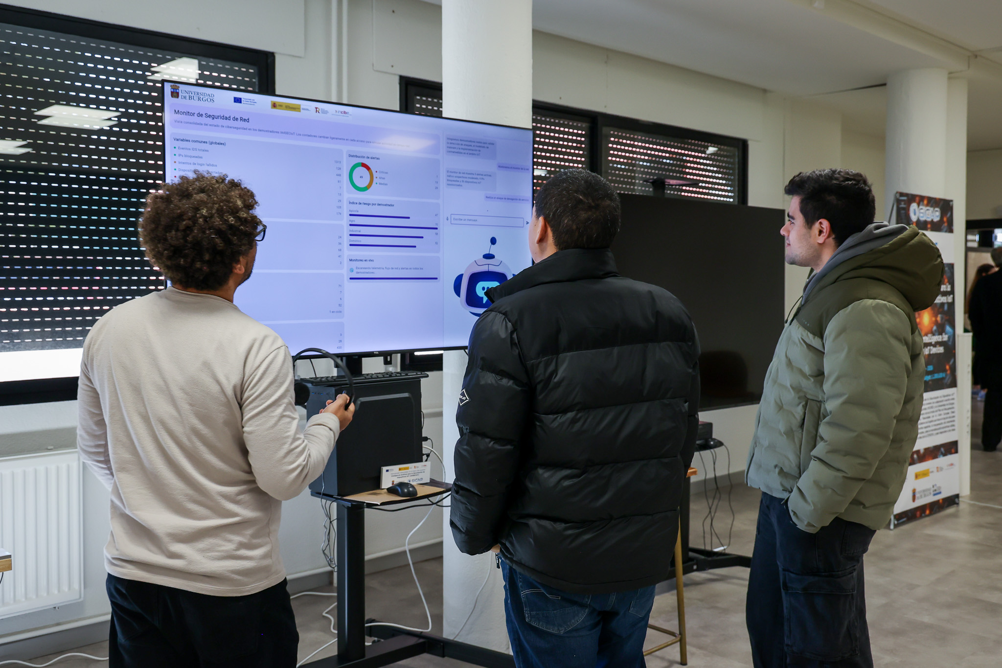 El objetivo era mostrar en un seminario algunos de los principales riesgos de ciberseguridad a los que nos enfrentamos en nuestra vida diaria y la manera en que la Inteligencia Artificial puede contribuir a minimizarlos, con una exhibición de demostradores centrados especialmente en el ámbito industrial, agrícola y doméstico.