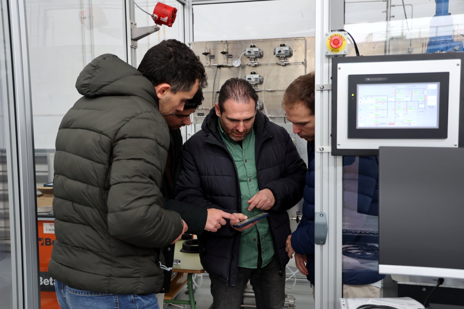 La reunión de trabajo se complementó con una visita a la empresa Hiperbaric, que investiga la compresión de hidrógeno (H2) - a muy alta presión - proveniente de energías renovables, con la que el Grupo GIE colabora en distintos proyectos.