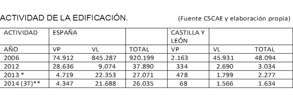El sector de la construcción en 2014 inició un modesto cambio de tendencia, a nivel nacional, pero en Castilla y León se estabilizó y las cifras advierten de un modelo agotado. En 2013 se visaron un 2,94% de viviendas respecto a 2006, en España, y en Castilla y León un 4,73%. Los datos de 2014 son de tres trimestres.