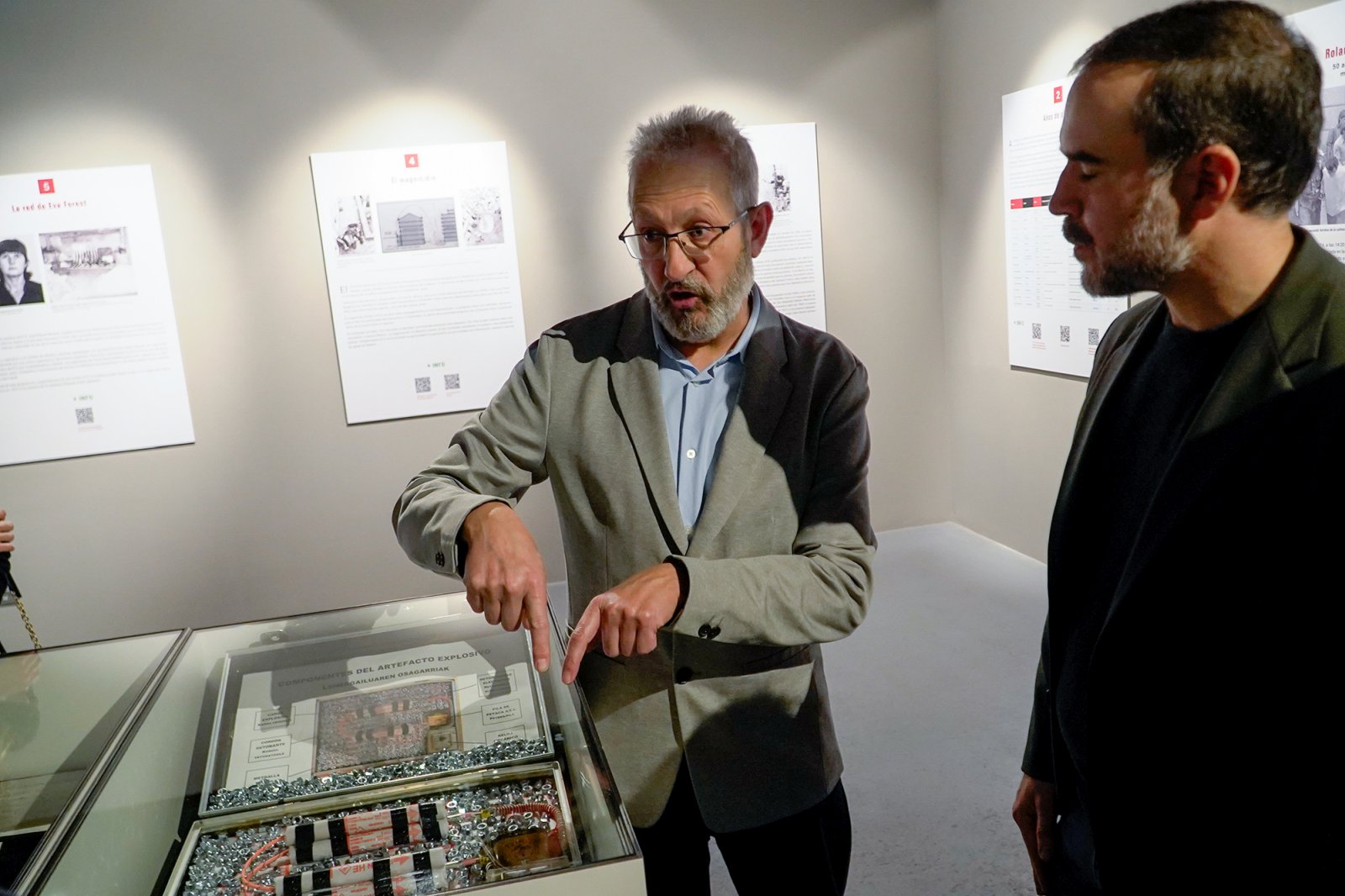Este trabajo expositivo está comisariado por Gaizka Fernández Soldevilla, Doctor en Historia Contemporánea y responsable del archivo, investigación y documentación del Centro Memorial de las Víctimas del Terrorismo; Sergio Cañas Díez, Doctor en Ciencias Humanas y Sociales y profesor de Historia Contemporánea de la Universidad de Burgos y Ana Escauriaza, investigadora, graduada en Historia y Periodismo por la Universidad de Navarra, y doctora en Historia Contemporánea en la Universidad del País Vasco (UPV-EHU). La producción de esta muestra fue una de las iniciativas organizadas por el Memorial para recordar a las víctimas del atentado ocurrido el 13 de septiembre de 1974. Además, se elaboró un libro sobre ese acto terrorista "Dinamita, tuercas y mentiras. El atentado de la cafetería Rolando" (Editorial Tecnos, 2024) y se grabó el testimonio de varias de sus víctimas que puede verse en la cuenta de YouTube del Centro Memorial Víctimas del Terrorismo. Era la primera vez que hablaban en 50 años.