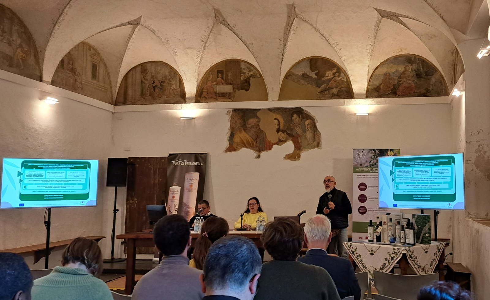 Durante la reunión se visitaron las parcelas experimentales de olivo y viñedo donde se desarrollan los ensayos pertenecientes a la Universidad Católica del Sacro Cuore (UCSC) de Piacenza, Italia. También se mantuvieron varias reuniones con productores y elaboradores de la zona así como una cata de aceite de oliva.