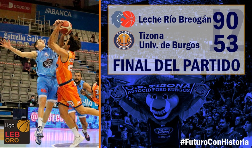 El Tizona Universidad de Burgos no podrá irse al parón de selecciones con un buen sabor de boca. Los de Jorge Elorduy cayeron ante el Leche Río Breogán por 90 a 53 en el Pazo de Lugo. Pese a un inicio igualado en el que los azulones dieron una buena imagen ante uno de los equipos favoritos de la categoría, el partido se rompió pronto. Los gallegos comenzaron a distanciarse en el marcador desde el segundo cuarto. aprovechando la falta de acierto ofensivo del Tizona. El Tizona trató de remontar en la segunda parte, pero su rival se mostró más fuerte y cerró el choque con un abultado triunfo.