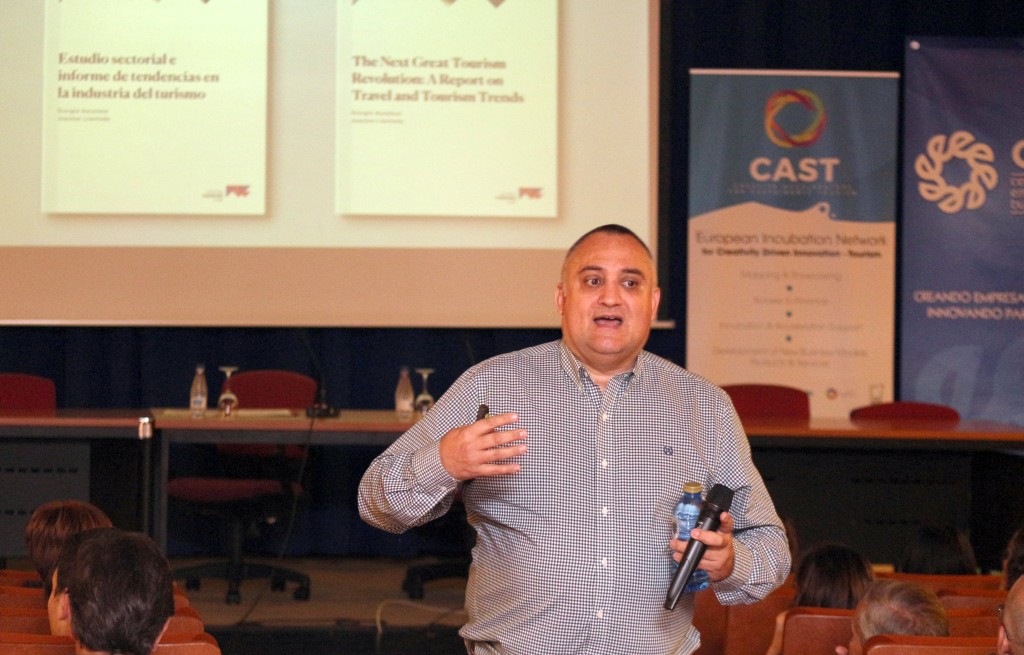 El primer ponente Joantxo LLantada, Experto en Marketing, Innovación y Estrategia, con más de 25 años de experiencia en branding, marketing y creación de productos de ocio, hospitalidad y turismo abordó los desafíos del sector turístico y las grandes oportunidades que presenta muchas de ellas