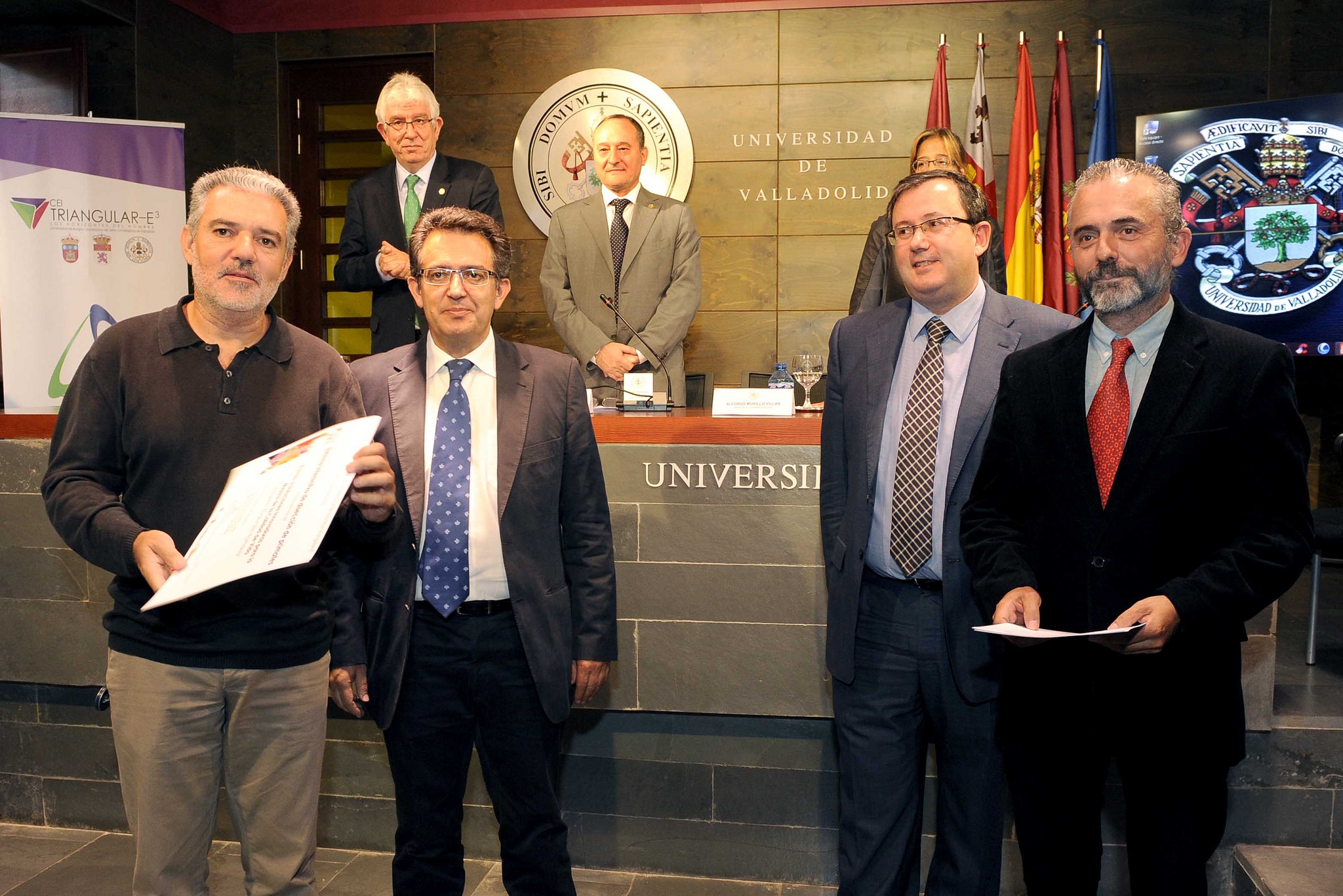 Los rectores de las universidades de Valladolid, Daniel Miguel San José; de León, José Ángel Hermida Alonso, y de Burgos, Alfonso Murillo Villar, entregaron los Premios a las Soluciones Innovadoras para la Mejora de la Calidad de Vida, convocados por el Campus de Excelencia Internacional-E3 , que integra a las tres universidades públicas de Castilla y León citadas.