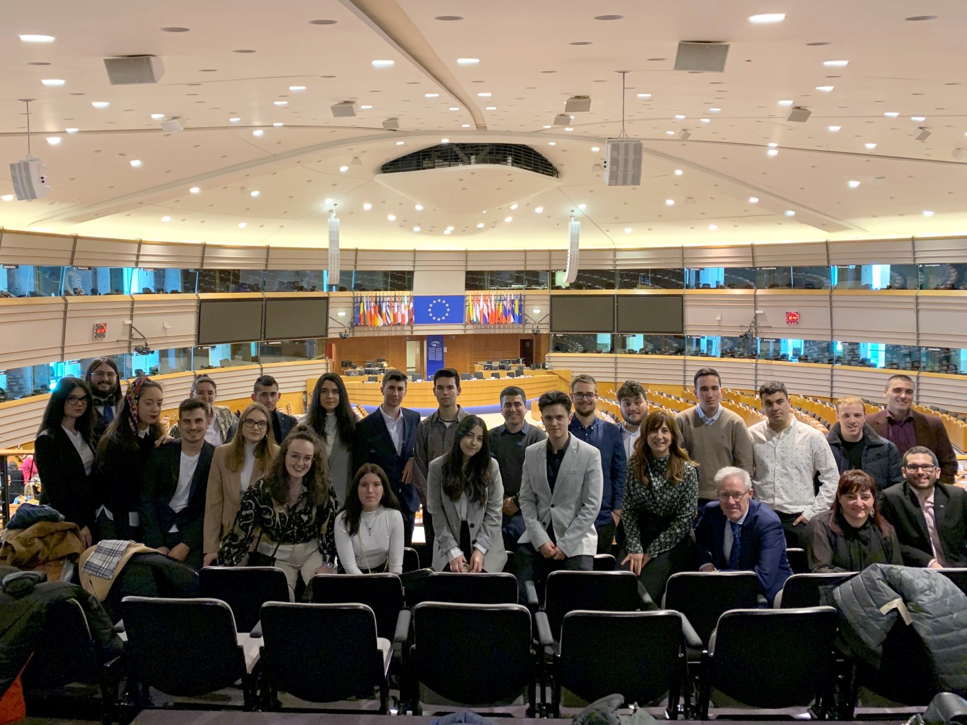 Un grupo de 20 estudiantes del Grado en Ciencia Política y Gestión Pública y del Doble Grado en Derecho y Ciencia Política y Gestión Pública de la Universidad de Burgos, junto con tres profesores del Área de Ciencia Política y de la Administración y dos profesores de Derecho: Sergio Pérez Castaños, Juan Antonio Rodríguez Zepeda, Marta Méndez Juez, Gemma Miguel Miguel y Amable Corcuera Torres han regresado de una visita institucional a la sede del Parlamento Europeo en Bruselas.