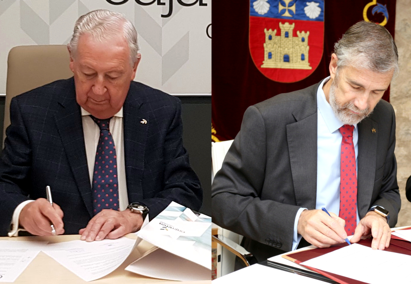 En virtud de un convenio rubricado por el rector de la Universidad de Burgos, Manuel Pérez Mateos, y el presidente de Fundación Caja Rural Burgos, Pedro García Romera, esta institución financiará la compra del material necesario para la fabricación de unas 4.000 pantallas que serán distribuidas a demanda por Protección Civil, Guardia Civil y ayuntamientos de la provincia.