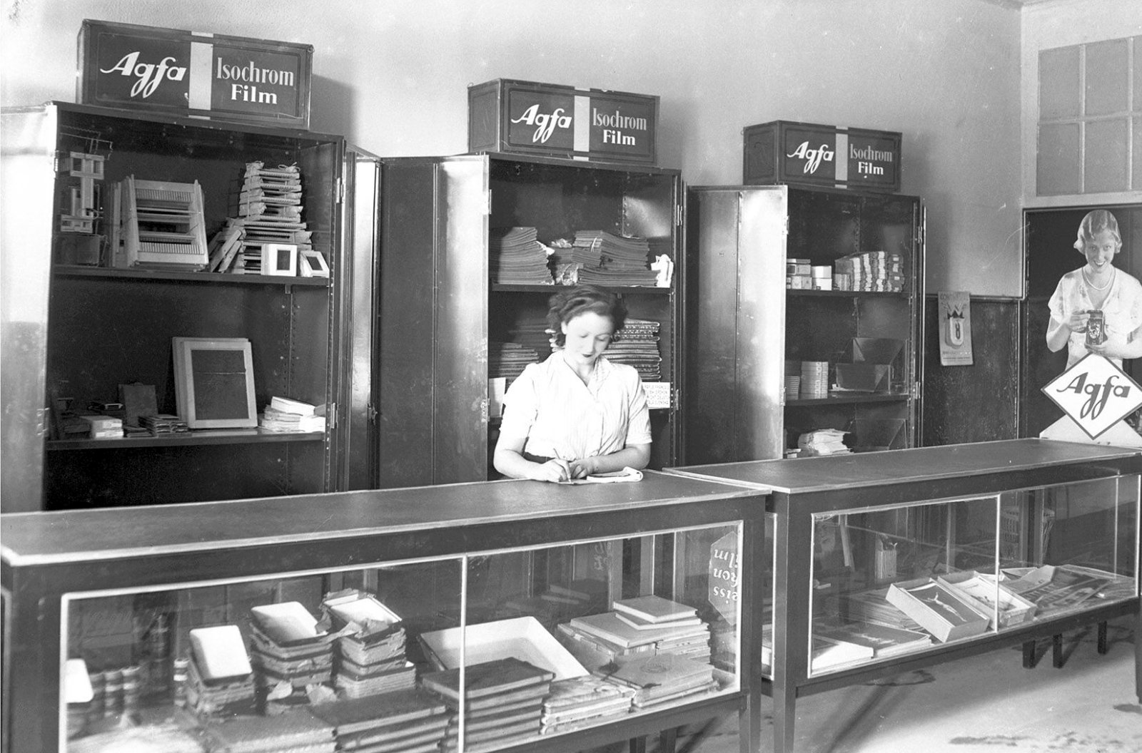 Acompañan a los paneles con fotografías varias vitrinas con documentos oficiales y originales del Archivo de la Diputación Provincial; revistas de la época en las que se publicaron las fotos de la empresa, cristales y negativos de celuloide.