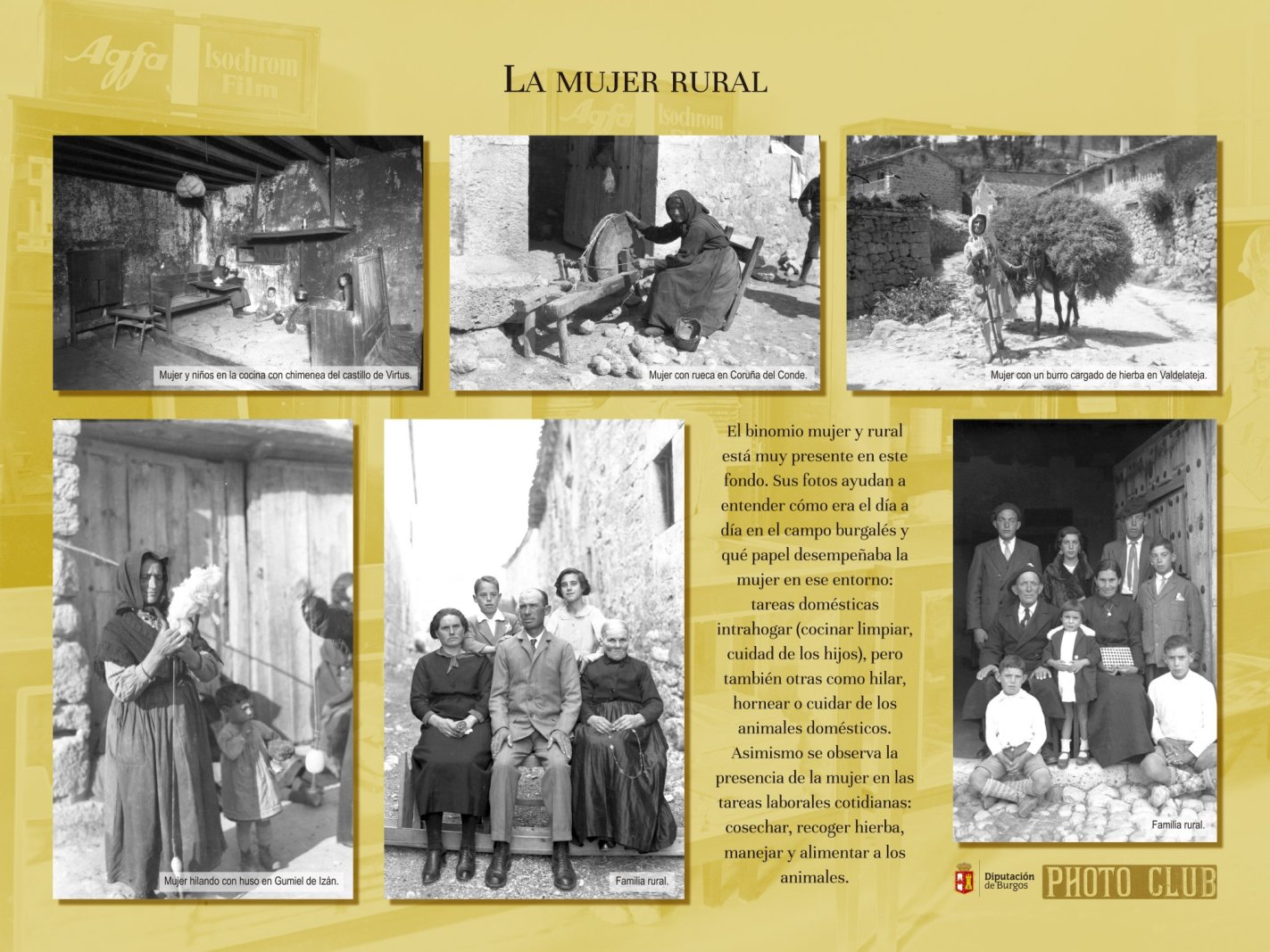La colección del Photo Club, establecimiento que funcionó en Burgos desde 1923 hasta mediados de los años 70, atesora más de 19.000 imágenes que fueron adquiridas por el Archivo de la Diputación Provincial de Burgos. Conforman un fondo documental gráfico de gran importancia porque reflejan la vida cotidiana y el patrimonio de una parte importante de nuestra historia. En la exposición se podrán ver fotografías de la Guerra Civil, la presencia de la mujer en la sociedad, el patrimonio cultural monumental, la ciudad y la provincia, además de una muestra de retratos y grupos que dan testimonio de la época. La muestra permite ver la evolución de la provincia a lo largo de medio siglo, con imágenes de una época que desaparecía y otra que nacía a la modernidad.