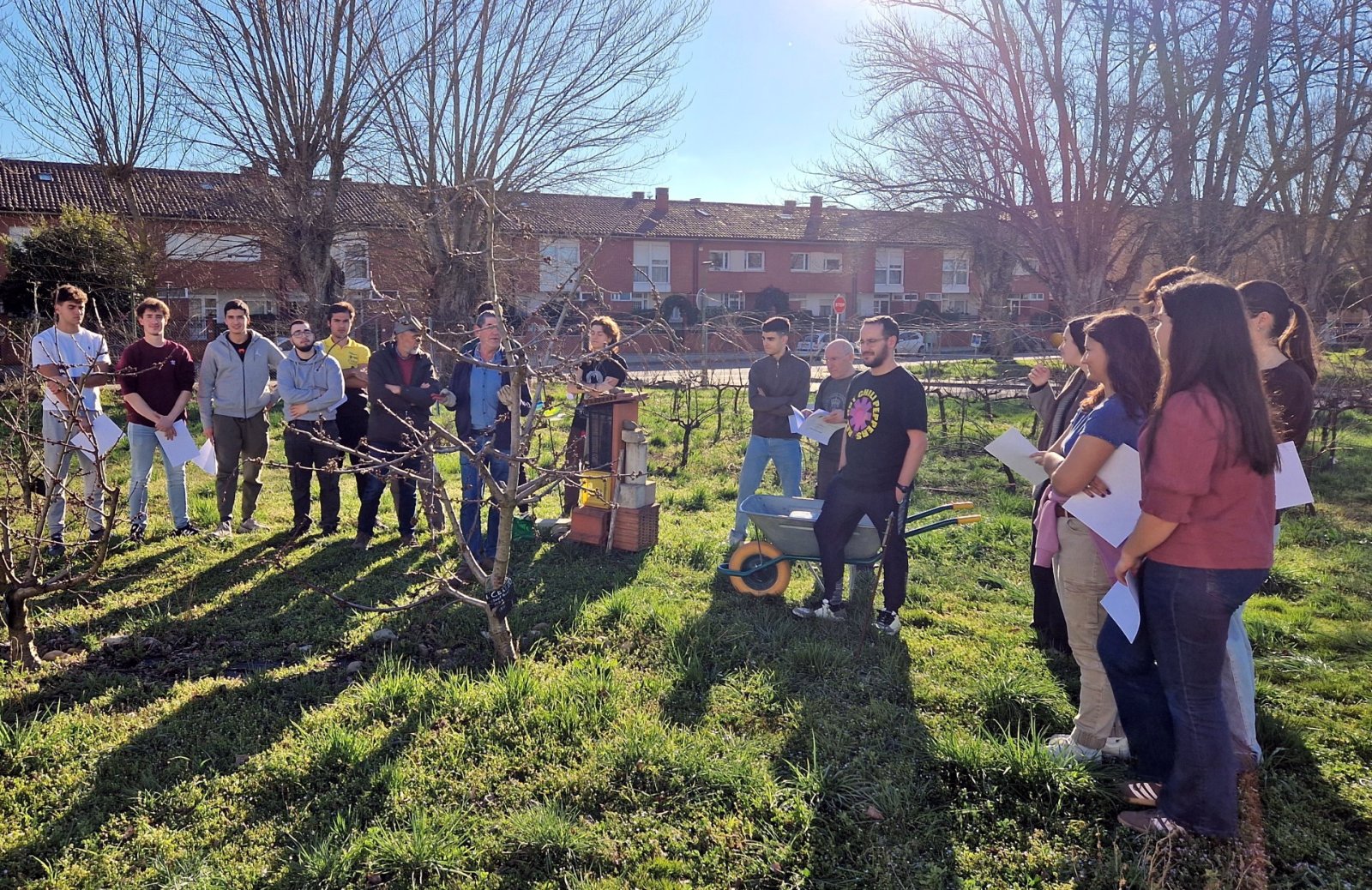 La jornada centrada en la poda de frutales fue impartida por Juan José Gandía, presidente de la Asociación de Productores de Caderechas, quien mostró a los estudiantes las principales técnicas de intervención en este tipo de cultivos y explicó la importancia de una poda adecuada para favorecer el desarrollo del árbol y mejorar su producción.
