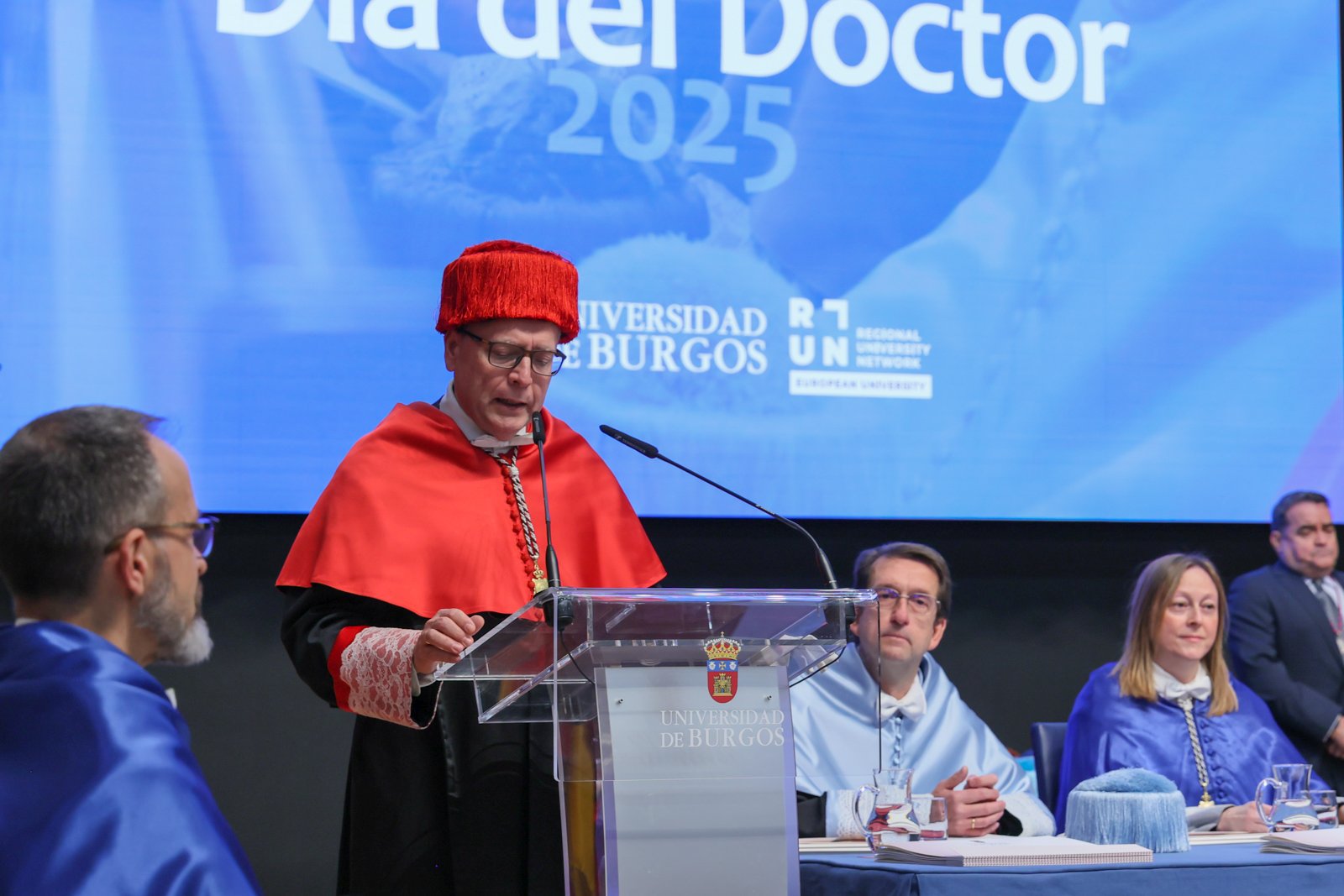 A ella han asistido la alcaldesa de Burgos, Cristina Ayala; el presidente del Consejo de Cámaras oficiales de Comercio, Industria y Servicios de Castilla y León, Antonio Miguel Méndez Pozo; cerca de 170 doctores, entre ellos los que leyeron su tesis en 2024 y sus familias, así como otros representantes universitarios y diversas autoridades políticas y sociales.