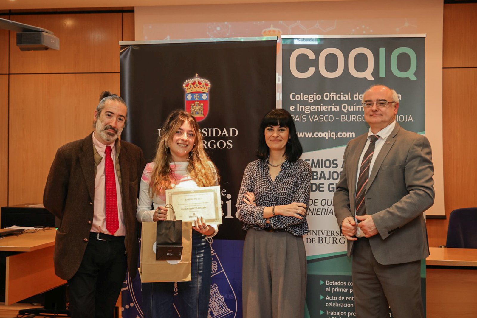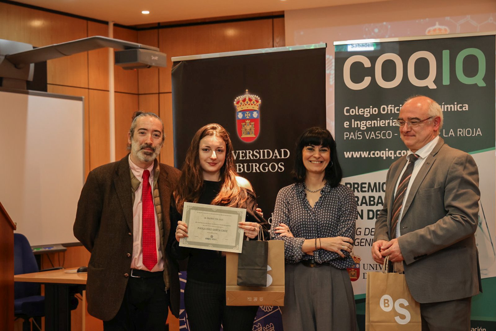Este premio, organizado en la Facultad de Ciencias con la colaboración del Colegio Oficial de Química e Ingeniería Química del País Vasco, Burgos y La Rioja y el Banco Sabadell, y que este año cumple su quinta edición, persigue mostrar el reconocimiento de alguno de los estudiantes de los últimos cursos de la Universidad de Burgos por la calidad e interés de sus Trabajos de fin de Grado en el ámbito de la Química. En él también ha participado Rosa María Madero Ceña, técnico de RRHH-Complejos industriales España del Grupo Dynasol, que ha abordado en su intervención las necesidades de talento de la empresa química, los requerimientos de contratación y las capacidades de interés para el sector empresarial, así como los aspectos de innovación en procesos, productos o sostenibilidad que Dynasol realiza en sus centros productivos.