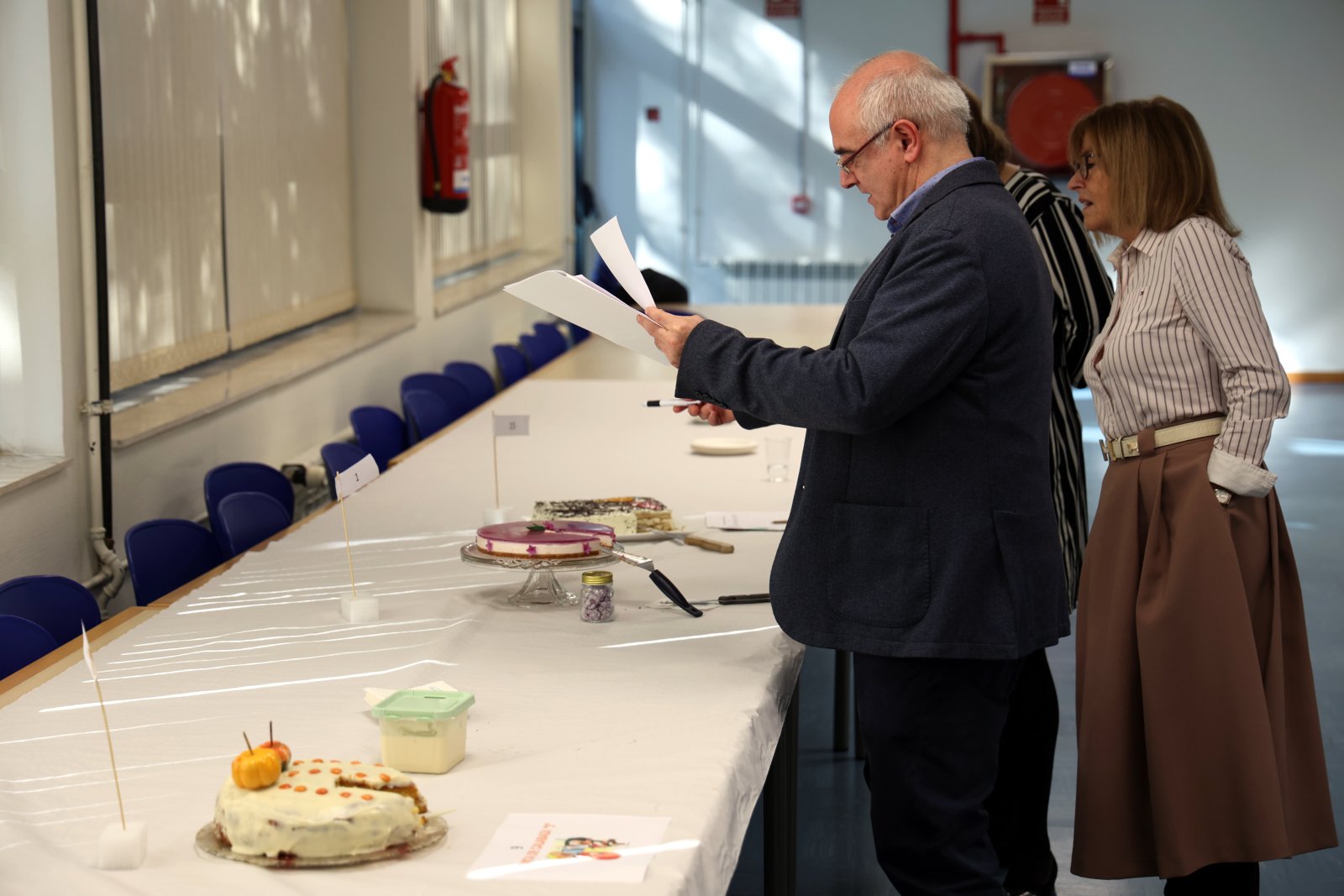 En un acto informal celebrado en la Facultad, el jurado - compuesto por los vicerrectores Francisco Javier Hoyuelos Álvaro y Gonzalo Salazar Mardones; la defensora universitaria, Julia Arcos Martínez; Silvia Mª Albillos García, vicedecana de la Facultad; y Susana Herrero, de El Mundo-El Correo de Burgos – tuvo la ocasión de degustar los dulces presentados, antes de dar a conocer su veredicto ante los asistentes.