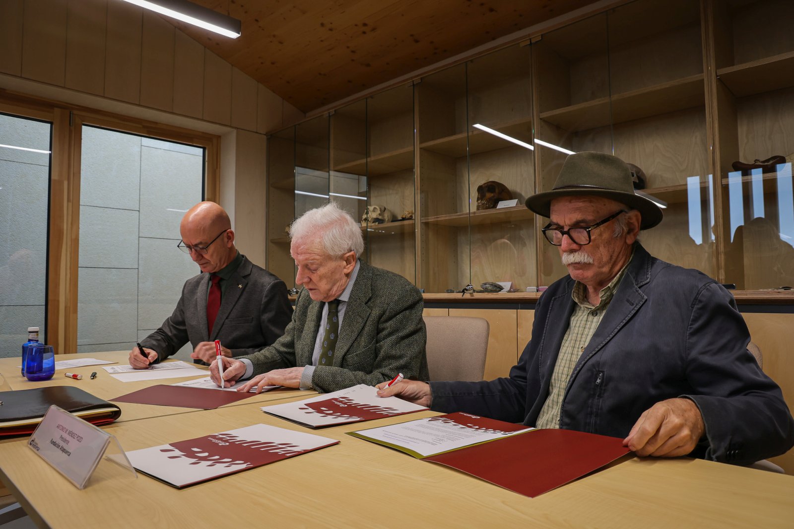 La firma ha tenido lugar en el Laboratorio Reina Sofía del Centro de Investigación Emiliano Aguirre de la Fundación Atapuerca, en Ibeas de Juarros. El acuerdo ha sido suscrito por Antonio Miguel Méndez Pozo, presidente de la Fundación Atapuerca; José Miguel García Pérez, rector de la Universidad de Burgos y Eudald Carbonell i Roura, vicepresidente de la Fundación Atapuerca y director del Centro de Investigación Emiliano Aguirre. En la firma también han estado presentes Eva Manrique Martínez, directora general de la Fundación Atapuerca; Delfín Ortega Sánchez, vicerrector de Relaciones Institucionales, Cultura y Proyección Social de la Universidad de Burgos e Igor Parra, arqueólogo y autor con Carbonell del libro “Teoría de la evolución social humana. Epigénesis y tecnología para supervivencia eficiente de la humanidad”.