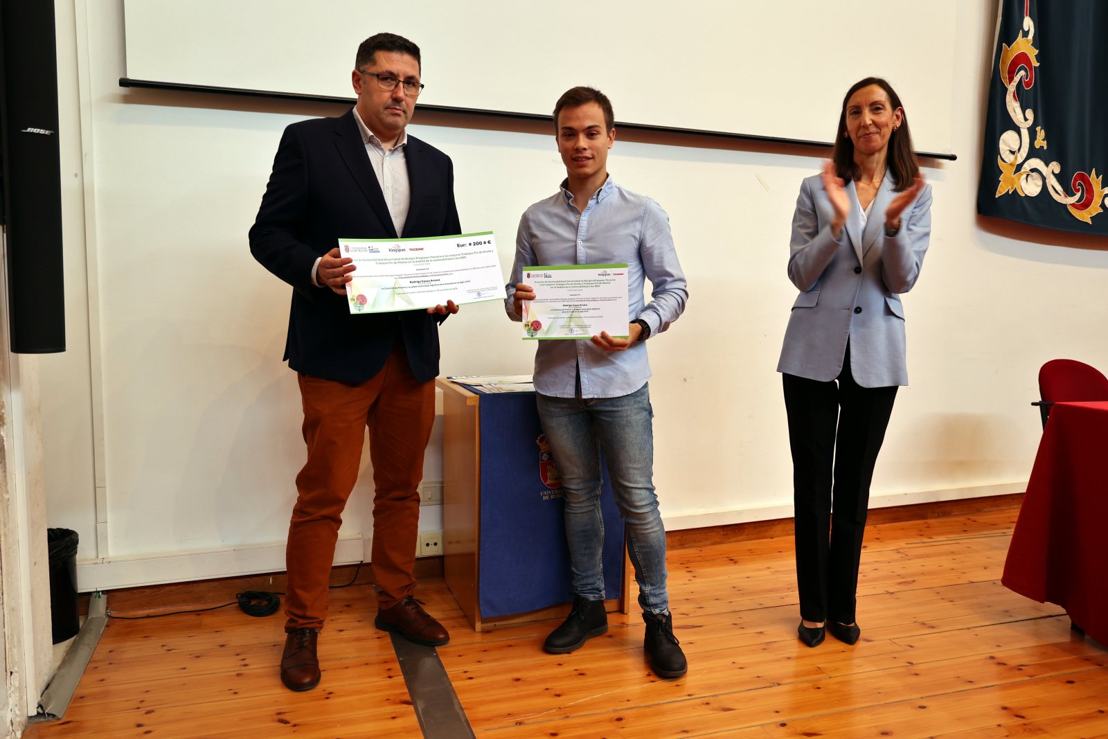 El mejor TFG correspondió a Rodrigo Casas Arranz, estudiante de la Facultad de Humanidades y Comunicación, por el trabajo “La Comarca de Pinares y su papel como base logística de la Armada en el siglo XVIII”. En su intervención, el premiado destacó la importancia de que estos premios reconozcan la aportación de las Humanidades a la Sostenibilidad que, a priorí, no se suelen vincular a este campo. En el mismo sentido se pronunció Paula Antón Maraña, alumna de la Facultad de Educación, ganadora del premio de la Universidad de Burgos por su TFM “Impacto de la sostenibilización curricular de bachillerato y formación profesional en el uso de plataformas colaborativas”, al resaltar la importancia de introducir el concepto de sostenibilidad en las aulas.