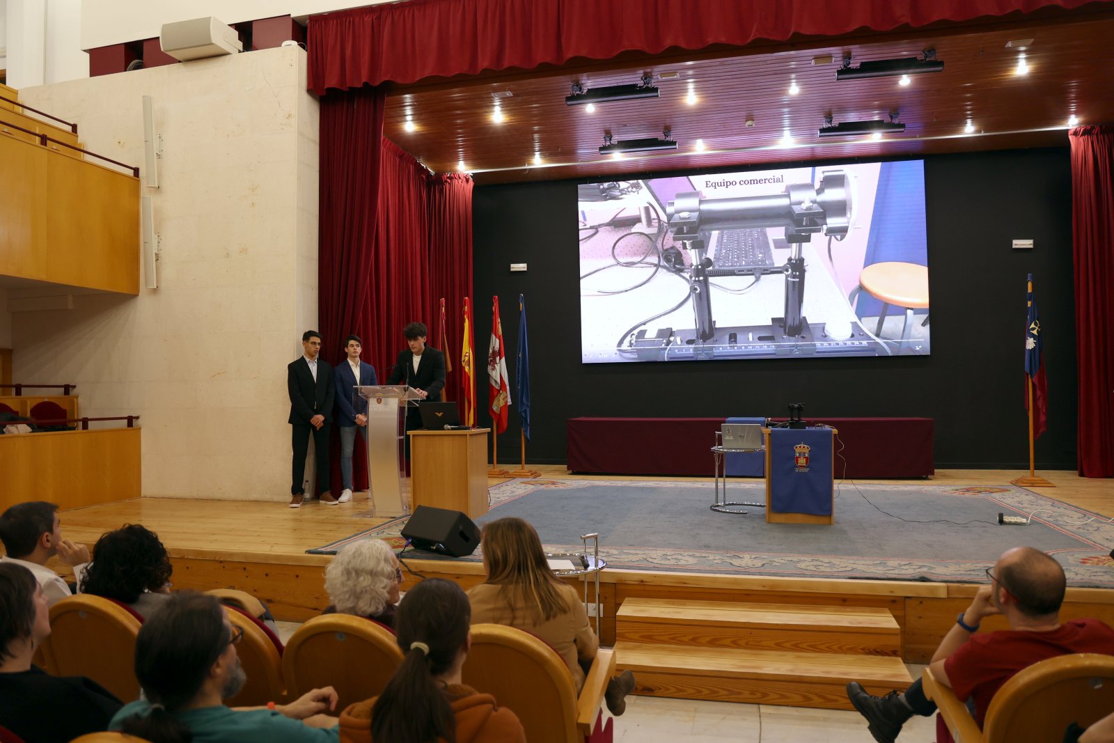 El proyecto Calibración óptica de sensores de radiación solar con impresión 3D y programación en Arduino, fue defendido en segundo lugar por sus autores: Ander González de la Hera, Jorge Herrero Marcos y Marco Saiz Martín. Estos alumnos han estado tutelados por su profesor Alfredo Gordillo Alonso y los docentes universitarios David González Peña, Manuel García Fuente, Ana García Rodríguez, Sol García Rodríguez, Cristina Alonso Tristán, Elena Garrachón Gómez y Cristian Terrados López.