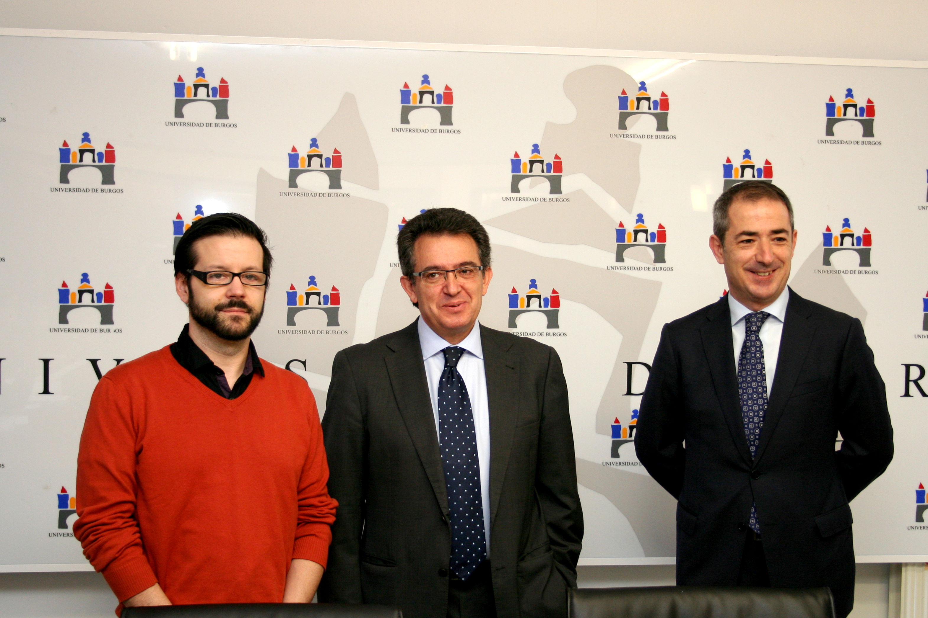 El Rector de la Universidad de Burgos, Alfonso Murillo Villar, el director territorial de CaixaBank en Castilla y León- Asturias, José Manuel Bilbao, y el Director del Instituto para el Liderazgo Social de Fundación Santa María la Real, Álvaro Retortillo, han rubricado el convenio de colaboración entre las tres entidades que permite la creación de esta Lanzadera de Empleo.