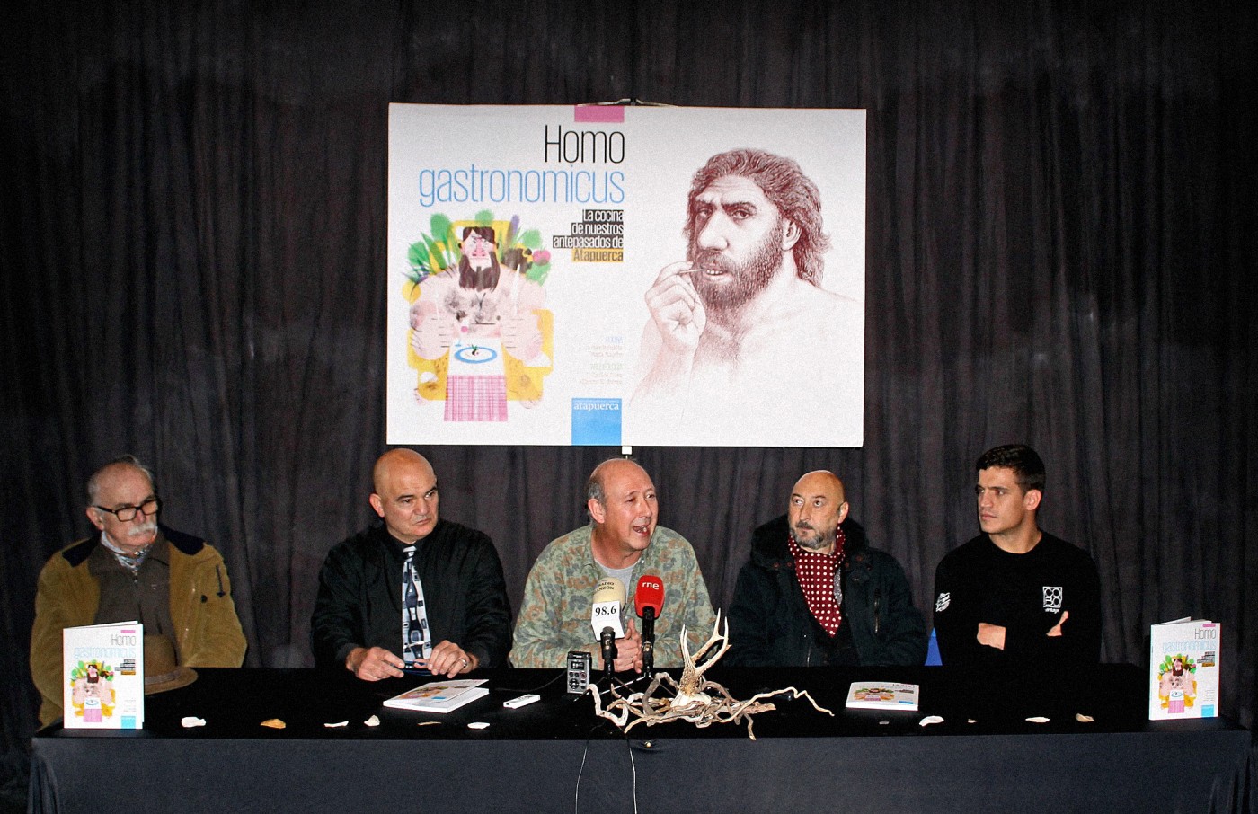 El libro “Homo gastronomicus. La cocina de nuestros antepasados de Atapuerca” se presentó el 9 de diciembre en el Centro de Creación Contemporánea Espacio Tangente con la presencia de Eudald Carbonell, codirector del Proyecto de Excavaciones de Atapuerca, y del chef Miguel Cobo, del restaurante “Cobo Vintage”, reciente “estrella Michelín”, que hicieron de anfitriones, y los autores Carlos Díez, Javier Bonilla y Rafa Rayón.