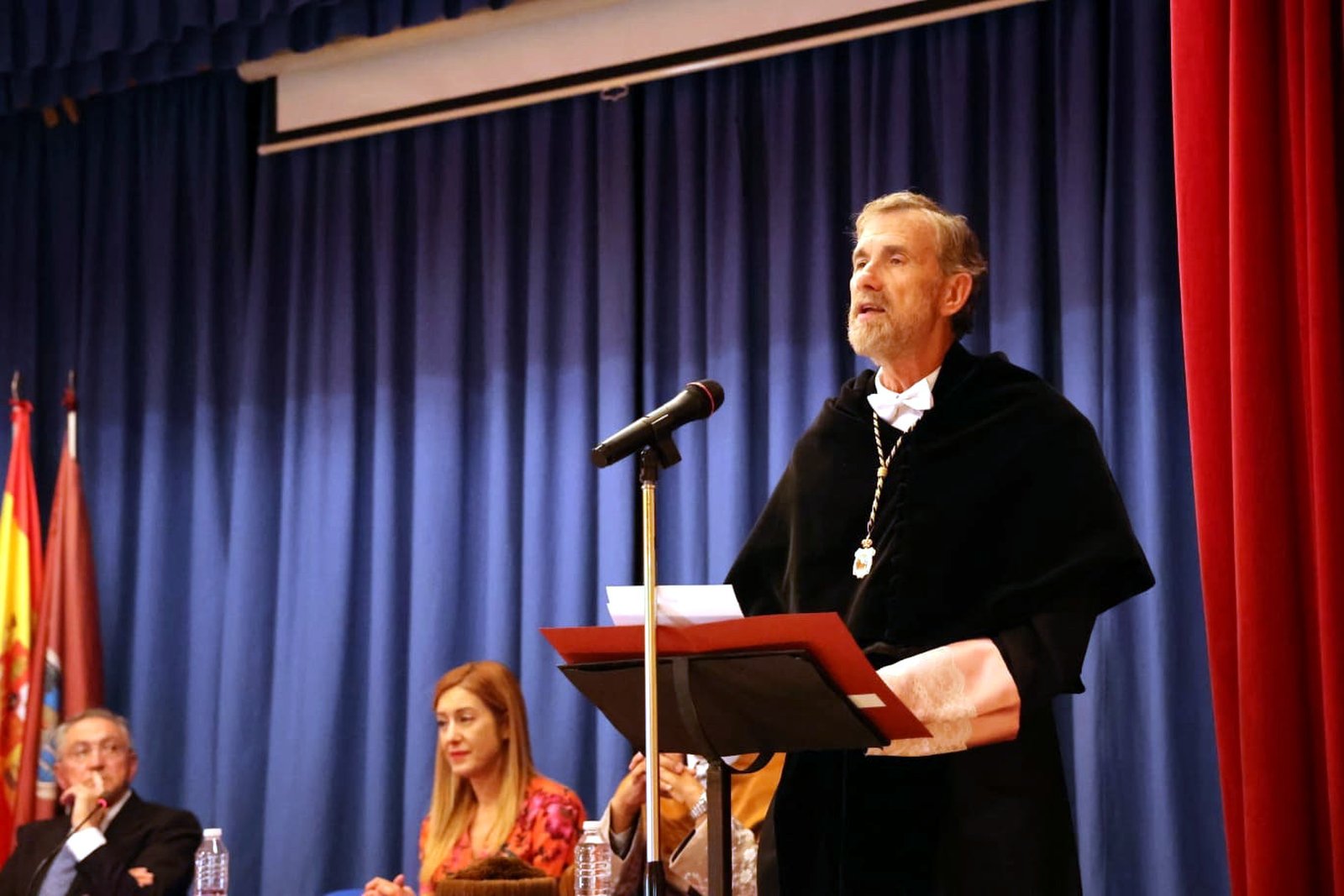 Tras estos reconocimientos, Pérez Mateos, centró su parlamento en los 18 estudiantes que inauguran el nuevo campus cursando el grado en Tecnologías Digitales para la Empresa, a quienes se dirigió afirmando: “Sabed que desde el lunes de la semana pasada, día en el que comenzaron vuestras clases, formáis parte de lo más importante de nuestra institución: su alumnado. Vosotros sois la principal razón, el motor que nos mueve a trabajar cada día para que la enseñanza, los valores y las oportunidades que se os ofrecen sean las mejores. Y existen datos, informes y rankings internacionales que demuestran que esta universidad pública no tiene nada que envidiar a cualquier otra de prestigio".