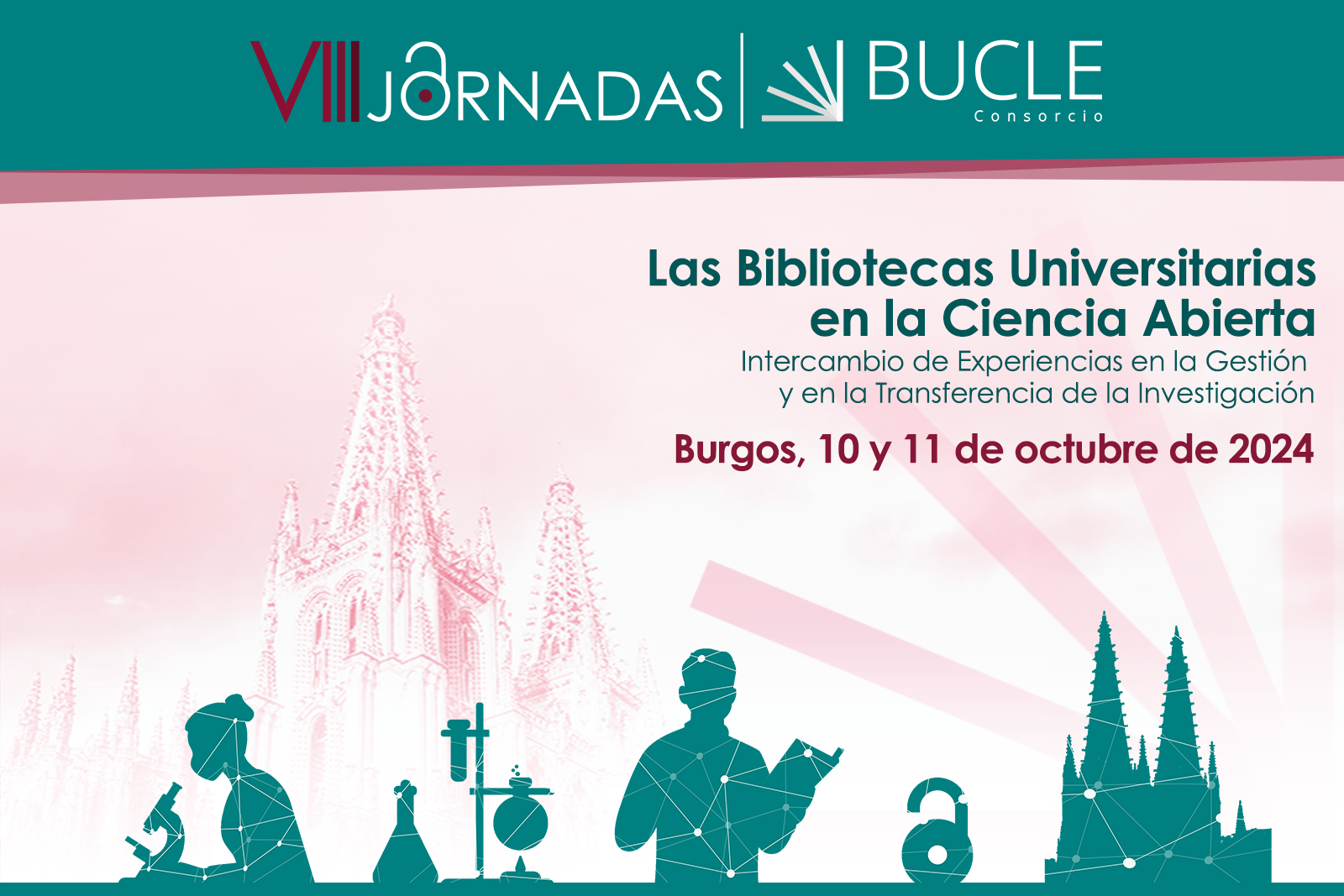 La Universidad de Burgos acoge, los días 10 y 11 de octubre, las VIII Jornadas BUCLE, bajo el título “Las Bibliotecas Universitarias en la Ciencia Abierta: Intercambio de Experiencias en la Gestión y en la Transferencia de la Investigación”.