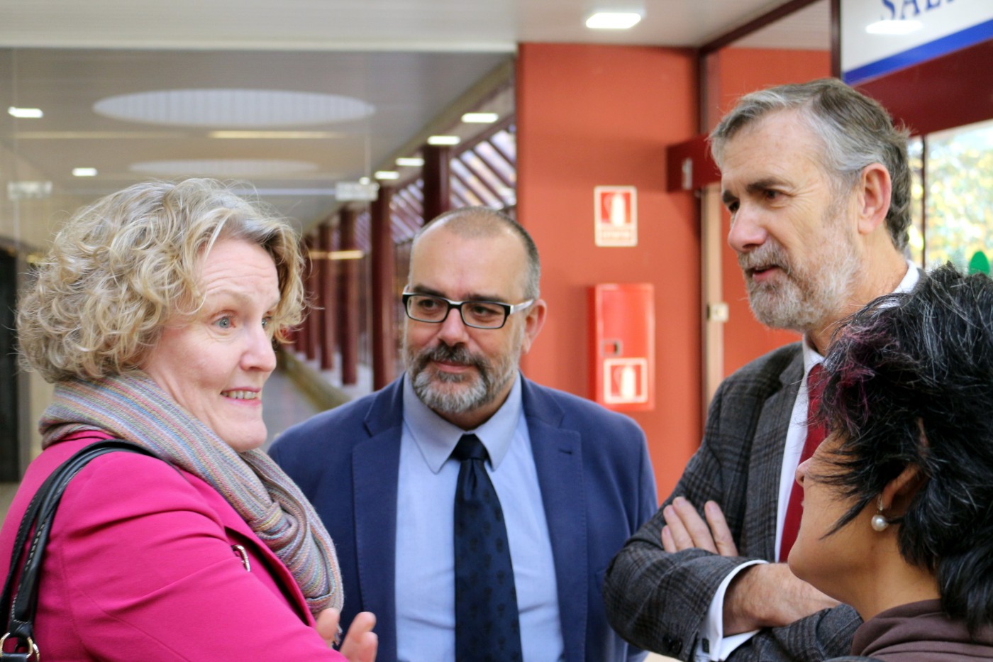 Una vez finalizada la inauguración de este encuentor, la embajadora visitó el campus del Hospital del Rey, firmó en el Libro de Honor de la Universidad de Burgos y mantuvo una reunión de trabajo con el rector y la vicerrectora de Internacionalización, Movilidad y Cooperación, Elena Vicente, para estudiar la posibilidad de estrechar lazos con la firma de convenios colaboración y el desarrollo de programas de doctorado conjuntos con universidades irlandesas.