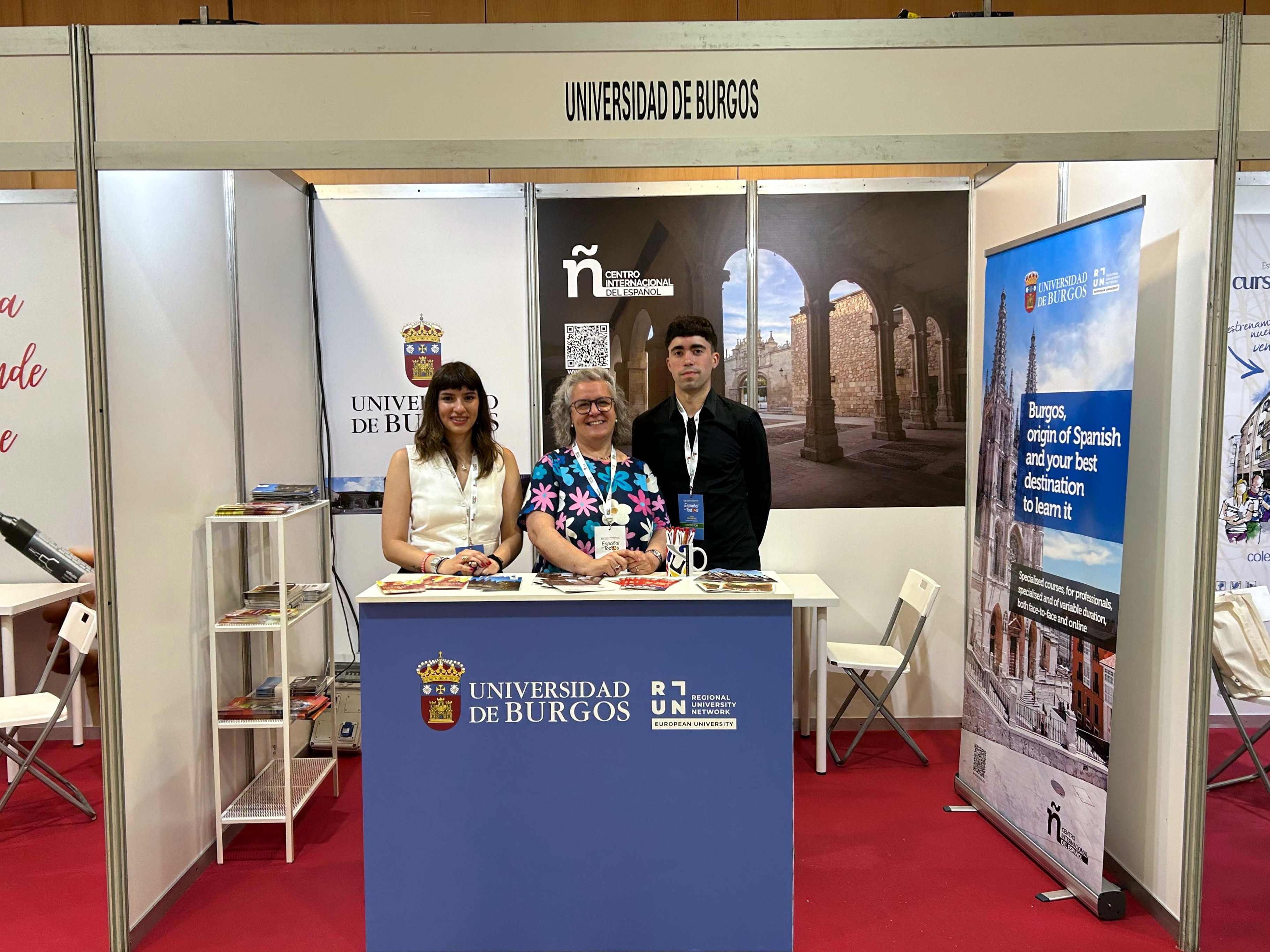 La participación de la UBU incluye un stand informativo, donde se presentan al resto de instituciones participantes los programas formativos y las actividades que desarrolla el CIE. Esta labor está a cargo de Ángela Pereda López, directora del centro, y Hugo Ráez, técnico de la Fundación General de la Universidad de Burgos.