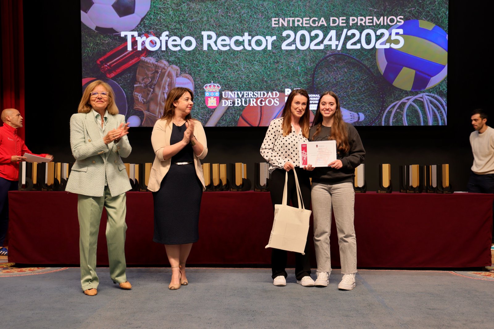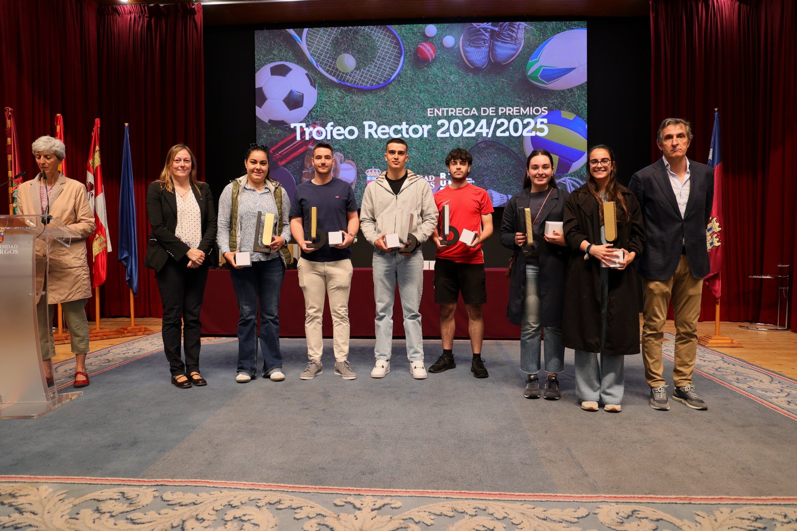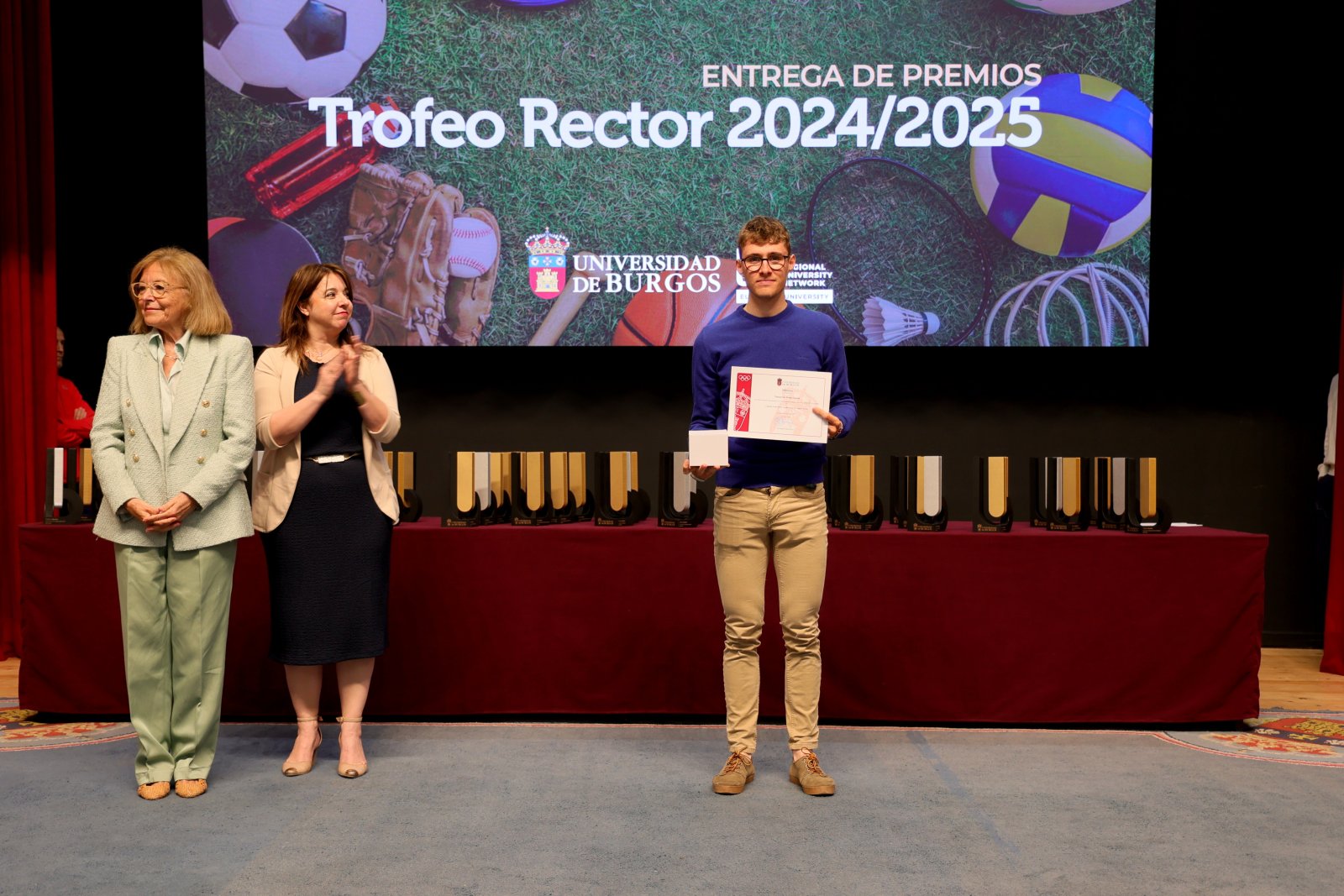 La Universidad de Burgos ha reconocido hoy a sus deportistas del curso 2024-2025 y ha entregado los premios en las modalidades de competición federada, Trofeo Rector de Castilla y León, Campeonatos de España universitarios y Trofeo Rector Universidad de Burgos. De este modo, se han entregado diplomas y trofeos a las personas y equipos que han logrado un resultado destacado en esta temporada. Los trofeos han sido elaborados, con en anteriores ocasiones, en cartón reciclado por el artesano Manuel Revilla, que para esta edición ha realizado una recreación del primer trofeo que confeccionó hace 25 años, cuando comenzaron a entregarse estos galardones.