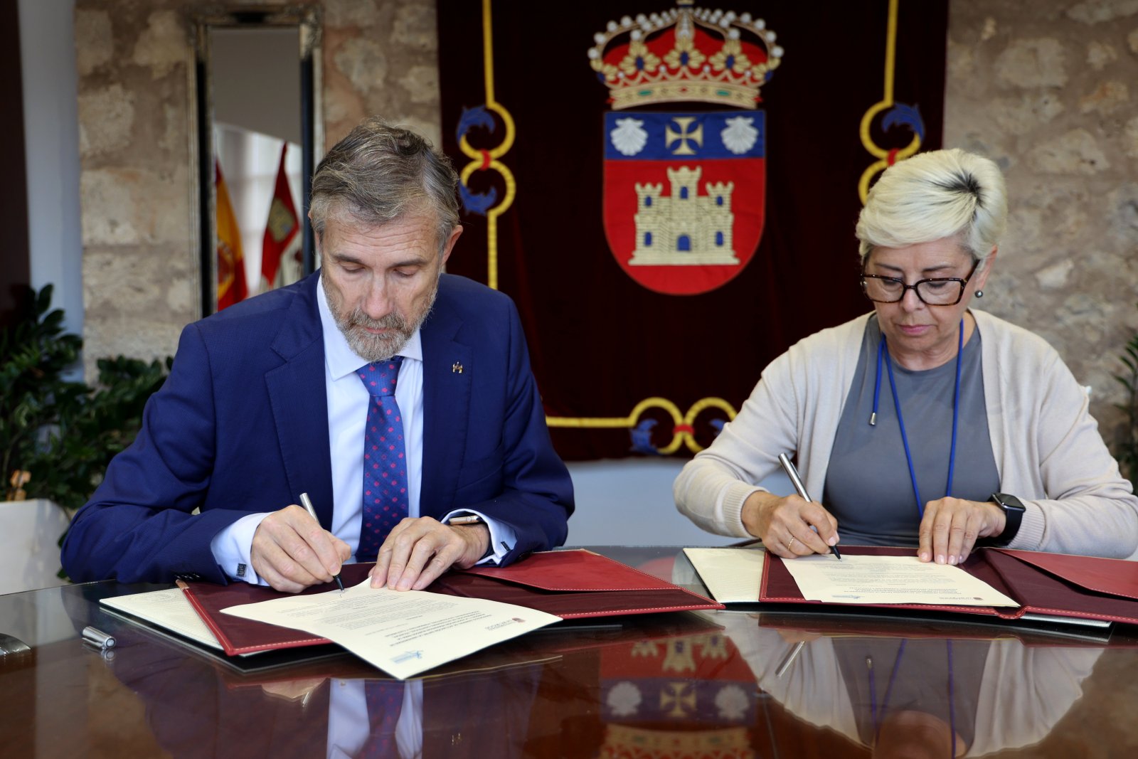 El rector de la Universidad de Burgos Manuel Pérez Mateos y la presidenta de la Asociación Párkinson Burgos María Jesús Delgado de Liras, han rubricado el acuerdo que formaliza algunas de las acciones conjuntas que ya se venían realizando en los ámbitos culturales formativos, culturales y de cooperación educativa para el desarrollo de prácticas, que se amplían para una mayor vinculación con aspectos docentes y de investigación.