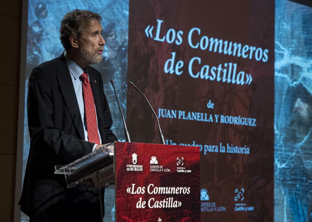 “El arte nos ayuda a reconstruir nuestra memoria histórica” ha asegurado hoy en las Cortes de Castilla y León el rector de la Universidad de Burgos, Manuel Pérez Mateos, en el acto de inauguración de la jornada “Los Comuneros de Castilla” que se ha celebrado con motivo de la restauración del cuadro del mismo nombre, obra del pintor Juan Planella y Rodríguez, que cuelga en el edificio del legislativo regional, tras ser cedido por el Museo del Prado a la Junta de Castilla y León.