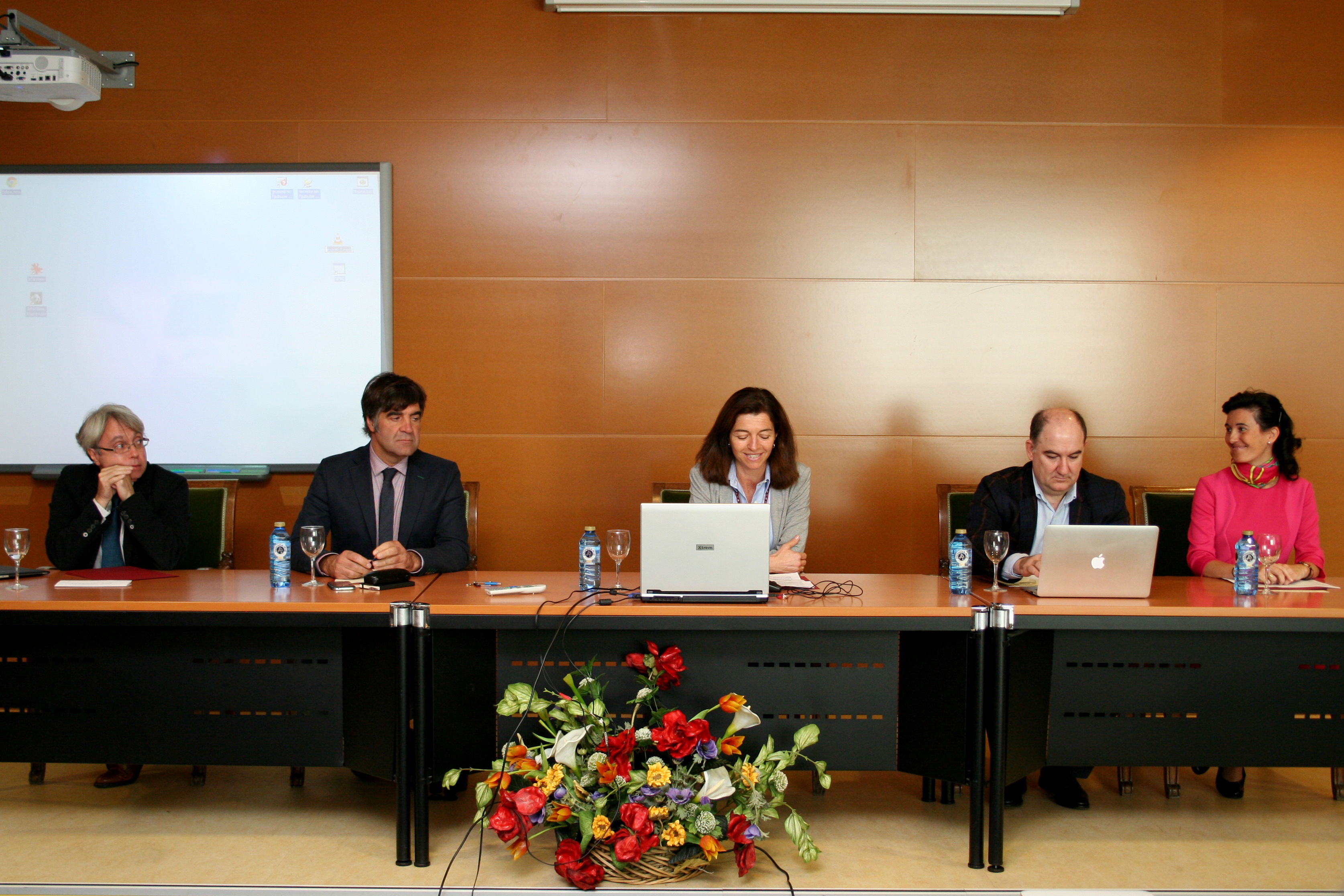 En la imagen: Nick Siavan, coordinador de Erasmus Mundus, Fernando Gómez, Concejal de Cultura y Turismo de Burgos, Elena Vicente, vicerrectora de Internacionalización de la UBU, Javier Campo, de ICMA-CSIC de Zaragoza y Pilar Alonso, Profesora de la Universidad de Burgos y directora en España de la Thematic Intensive School on Conservation Science