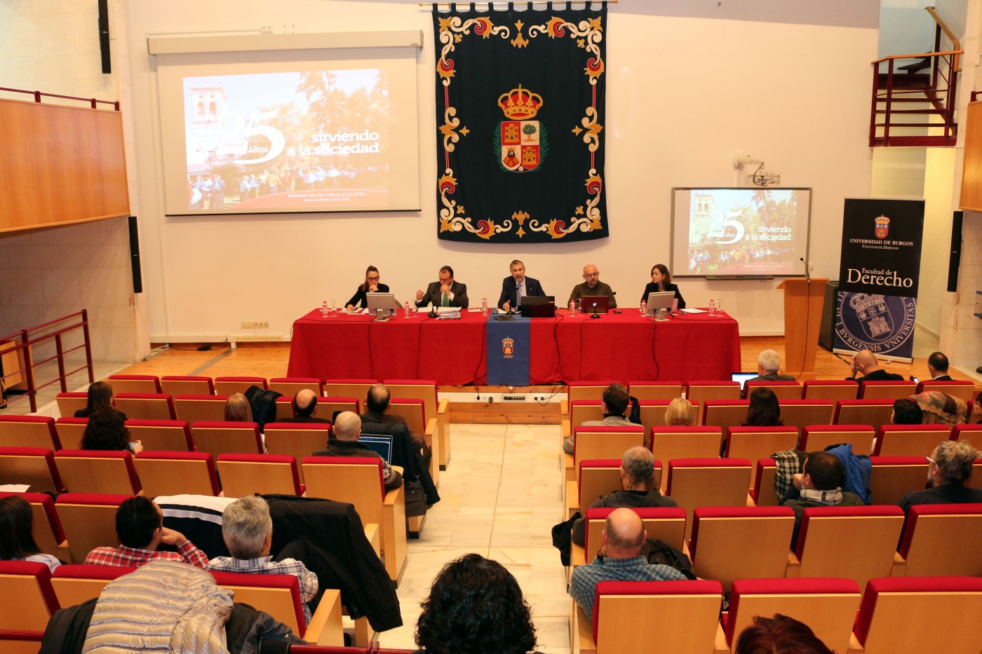 El Rector y la Defensora Universitaria sometieron a la consideración del Claustro sus respectivos informes, que muestran el balance de su gestión. En su informe el rector - tras avanzar los principales acontecimientos que se desarrollarán con motivo del vigésimo quinto aniversario de la UBU- ha señalado que el Consejo de Gobierno ha desarrollado una intensa actividad de debate, propuestas y normativas subrayando la Mesa de Diálogo de carácter permanente con el colectivo de estudiantes, el segundo Plan de Igualdad de Oportunidades, el Código ético y el pacto para la protección de los Derechos de la Infancia.