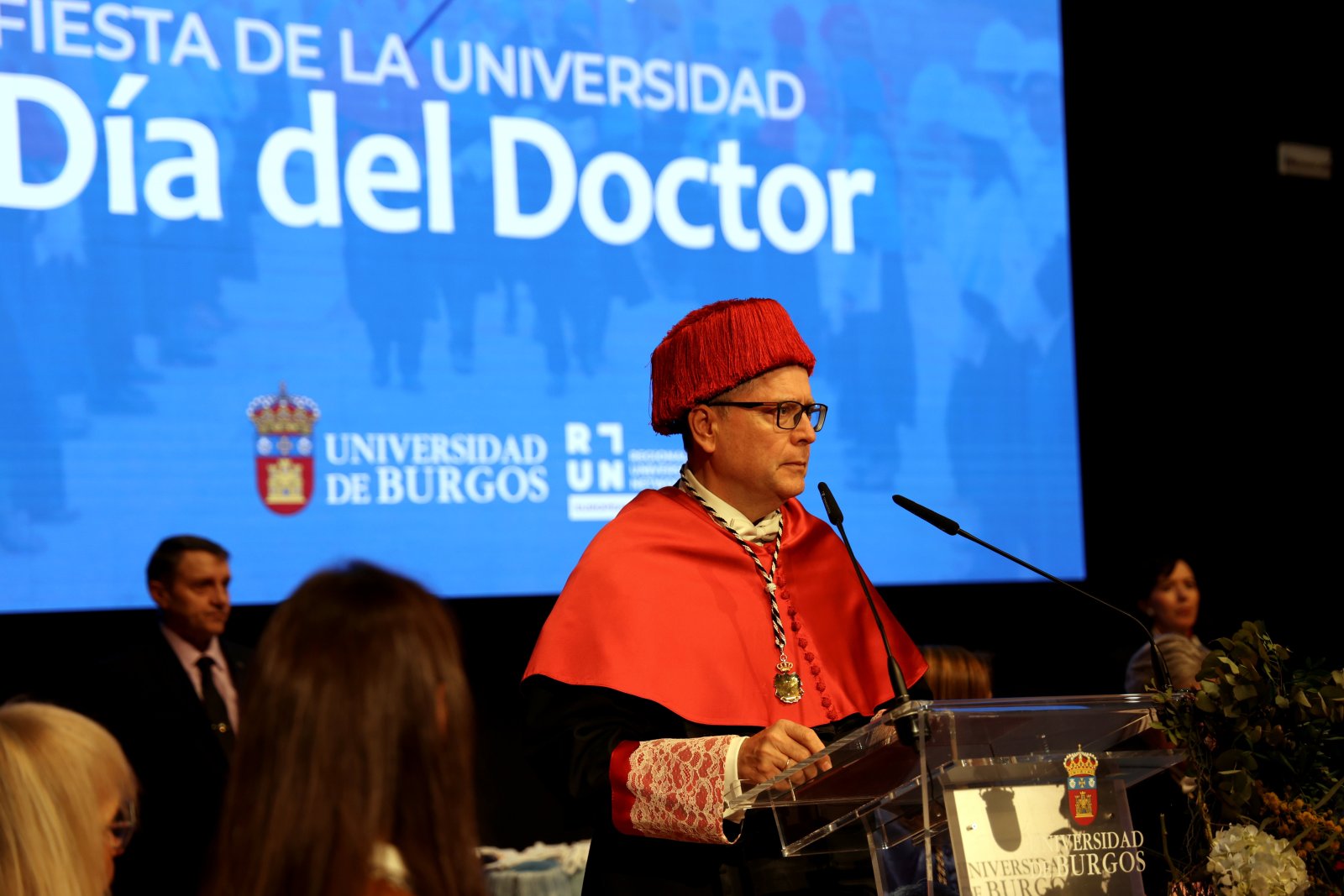 Por ello, Manuel Pérez Mateos, aprovechó sus palabras para “invitaros, especialmente a los nuevos doctores y doctoras, a aprovechar las nuevas y numerosas ventajas que se abren para la Universidad de Burgos gracias a nuestra integración en RUN-EU. Pensad como universidad europea. Investigad como tal, sin fronteras físicas ni intelectuales”.