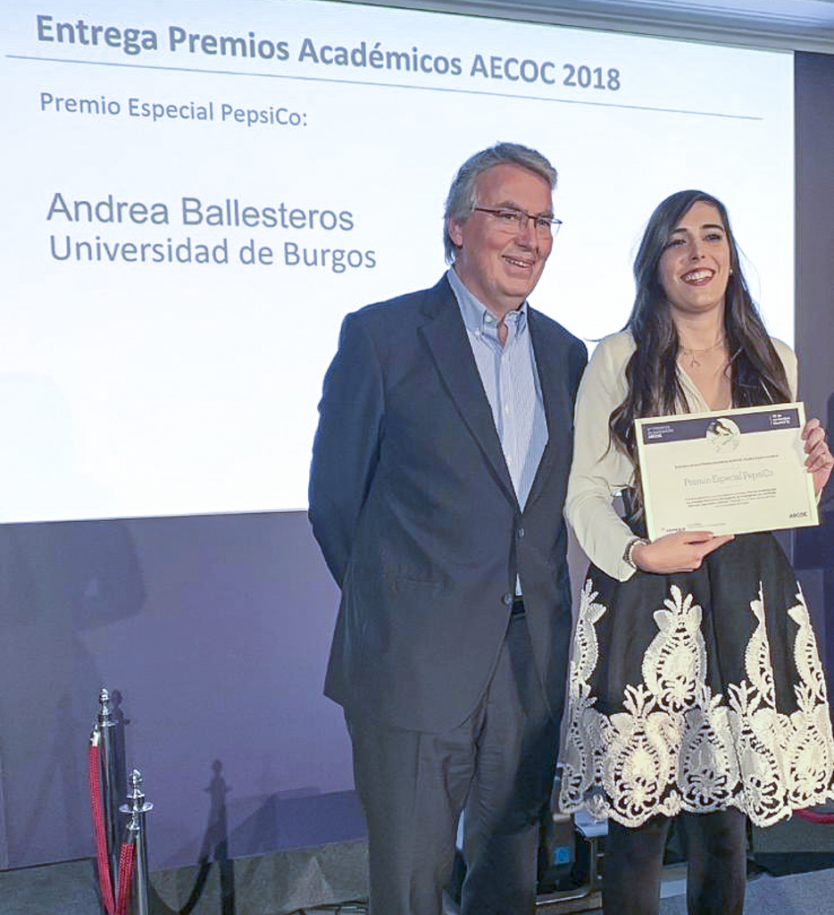 La alumna de la Universidad de Burgos, Andrea Ballesteros Palacios, ha resultado ganadora del Premio Especial PepsiCo en los V Premios Académicos AECOC (Asociación de Fabricantes y Distribuidores) por su trabajo Fin de Grado en Administración y Dirección de Empresas (ADE).