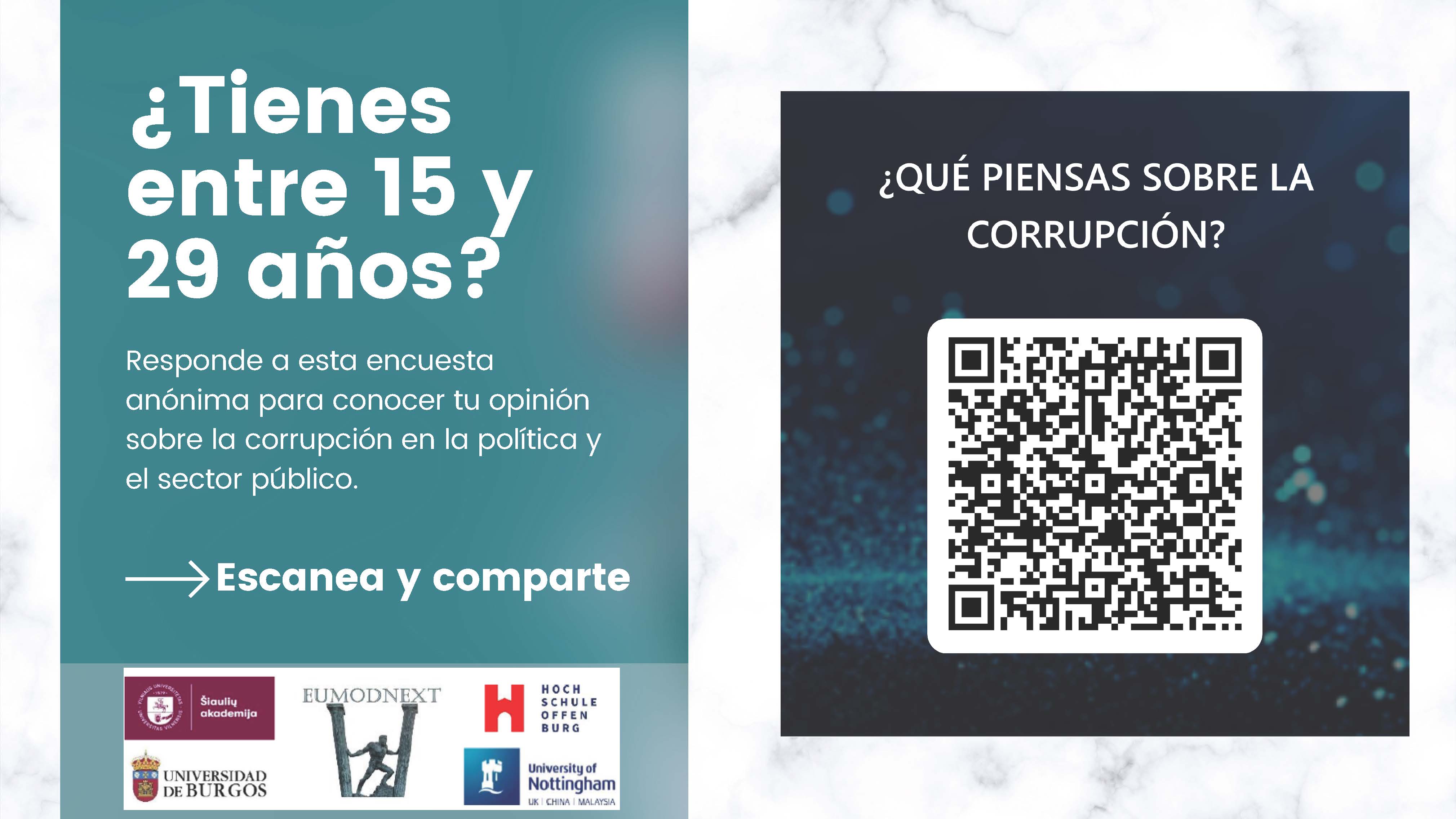 Enmarcada el proyecto europeo EUMODNEXT que, coordinado por la Universidad de Burgos, tiene como objetivo estudiar la problemática del fraude y la corrupción en la Unión Europea, en particular en la utilización y concesión de los fondos Next Generation, se está llevando a cabo la investigación "Actitudes y comportamiento de los jóvenes ante la corrupción en la Unión Europea"