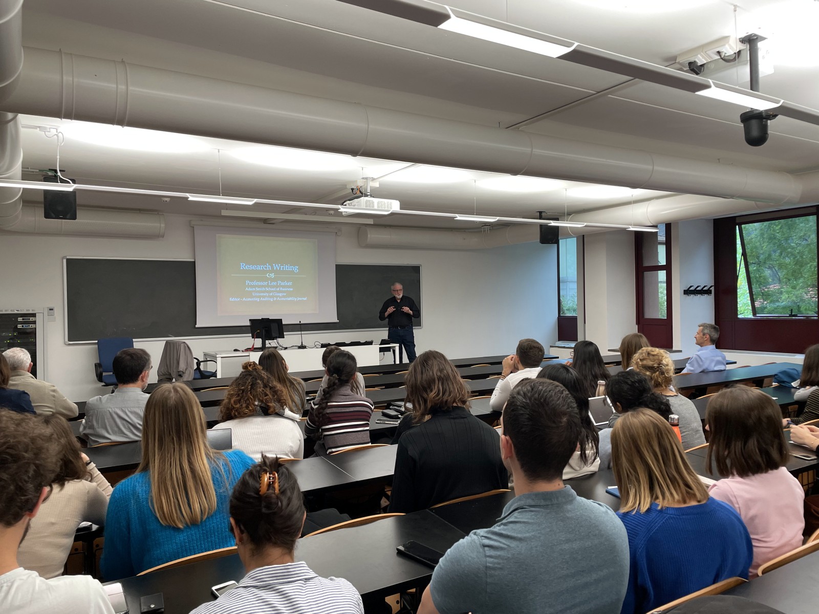 El grupo también participó en los seminarios impartidos por académicos de reconocimiento internacional en el campo de la investigación sobre contabilidad y sostenibilidad, como el profesor Lee Parker (Universidad de Glasgow), el profesor Stefan Schaltegger (Universidad de Leuphana) y el profesor Carlos Larrinaga (Universidad de Burgos).
