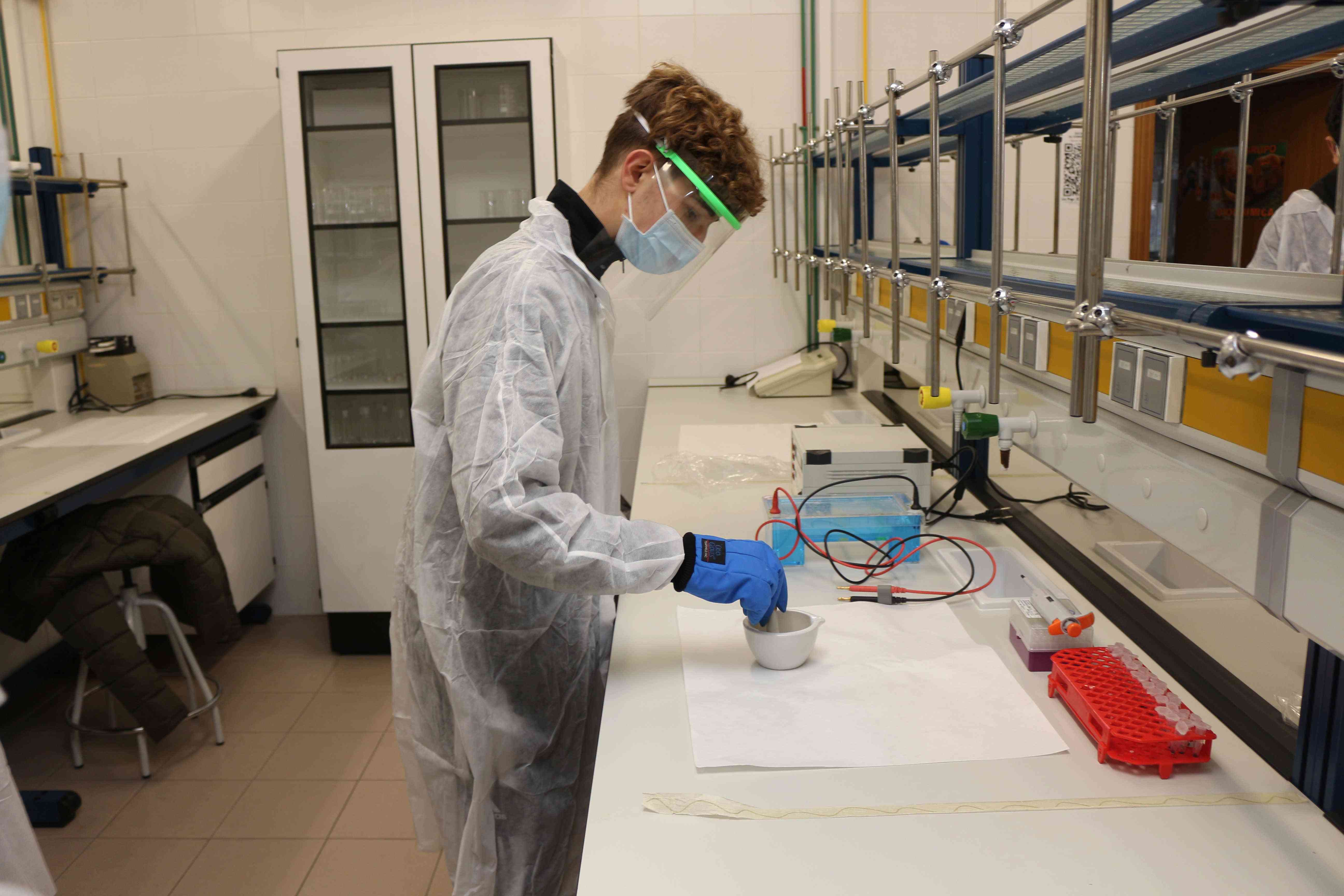 En el laboratorio de Química Analítica, estos jóvenes investigadores llevaron a cabo experimentos utilizando otros sentidos que no fueran la vista. En el taller “la química más allá de lo que ven nuestros ojos” se han organizado en parejas, uno de los chicos llevaba puesto el antifaz y el otro actuaba como ayudante. Se trataba de mostrar que todos pueden llevar a cabo las prácticas de laboratorio, en unos talleres dinámicos e inclusivos. “Los alumnos realizaron los experimentos con un antifaz, de modo que puedan “ver” los experimentos desde una perspectiva diferente y sensibilizarse acerca de las dificultades que tienen las personas con discapacidad visual para desarrollar este tipo de tareas”, según indicó la profesora Herrero Gutiérrez. Asimismo, participaron otra sesión en el laboratorio de Biología Molecular para analizar hojas de lechuga y procedieron a la extracción e identificación en geles de agarosa de ADN de tejido vegetal.