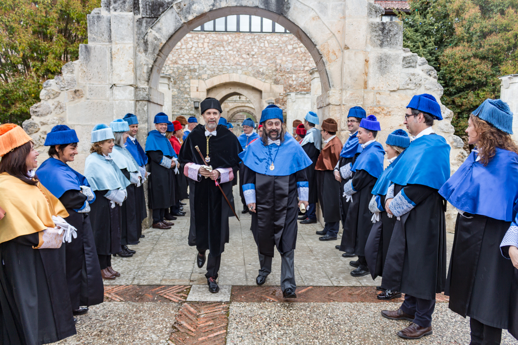 El acto finalizó con la intervención del Coro de la Universidad de Burgos, el canto del Gaudeamus Igitur, y el descubrimiento del vitor situado en el patío de Romeros del Hospital del Rey.