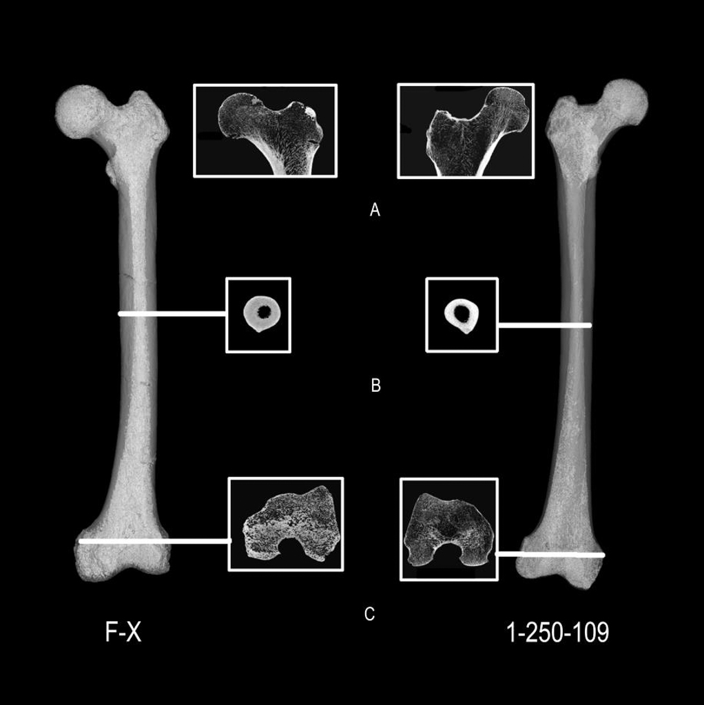 Los investigadores recuerdan que los análisis biomecánicos de restos esqueléticos son especialmente valiosos a la hora de reconstruir patrones de comportamiento y actividad física de los individuos. En el estudio publicado en Journal of Human Evolution, se han centrado en las secciones de tres huesos largos de la pierna, es decir, el fémur, la tibia y el peroné, que son los más implicados en la locomoción. Lo primero que constataron es la enorme robustez que presentan los huesos de estos humanos arcaicos, mucho más robustos y con unas paredes corticales mucho más gruesas y diámetros exteriores mayores que en nuestros huesos. En esto, lo humanos de SH se parecen también a los de los Neandertales y otros humanos arcaicos, como H. ergaster y H. erectus. Paredes más gruesas y diámetros exteriores mayores implican mayor resistencia a las fuerzas de combadura y torsión, pero también a la carga axial (vertical), que es la que está provocada básicamente por el peso corporal del individuo. Además, el fémur presenta secciones de forma muy circular, mientras que en nuestro caso suele ser más bien elíptica de delante hacia atrás o más en forma de almendra. “Esto –concluyen- ya nos indica que el patrón de fuerzas al que estaba sometido el fémur de estos humanos era diferente al nuestro”