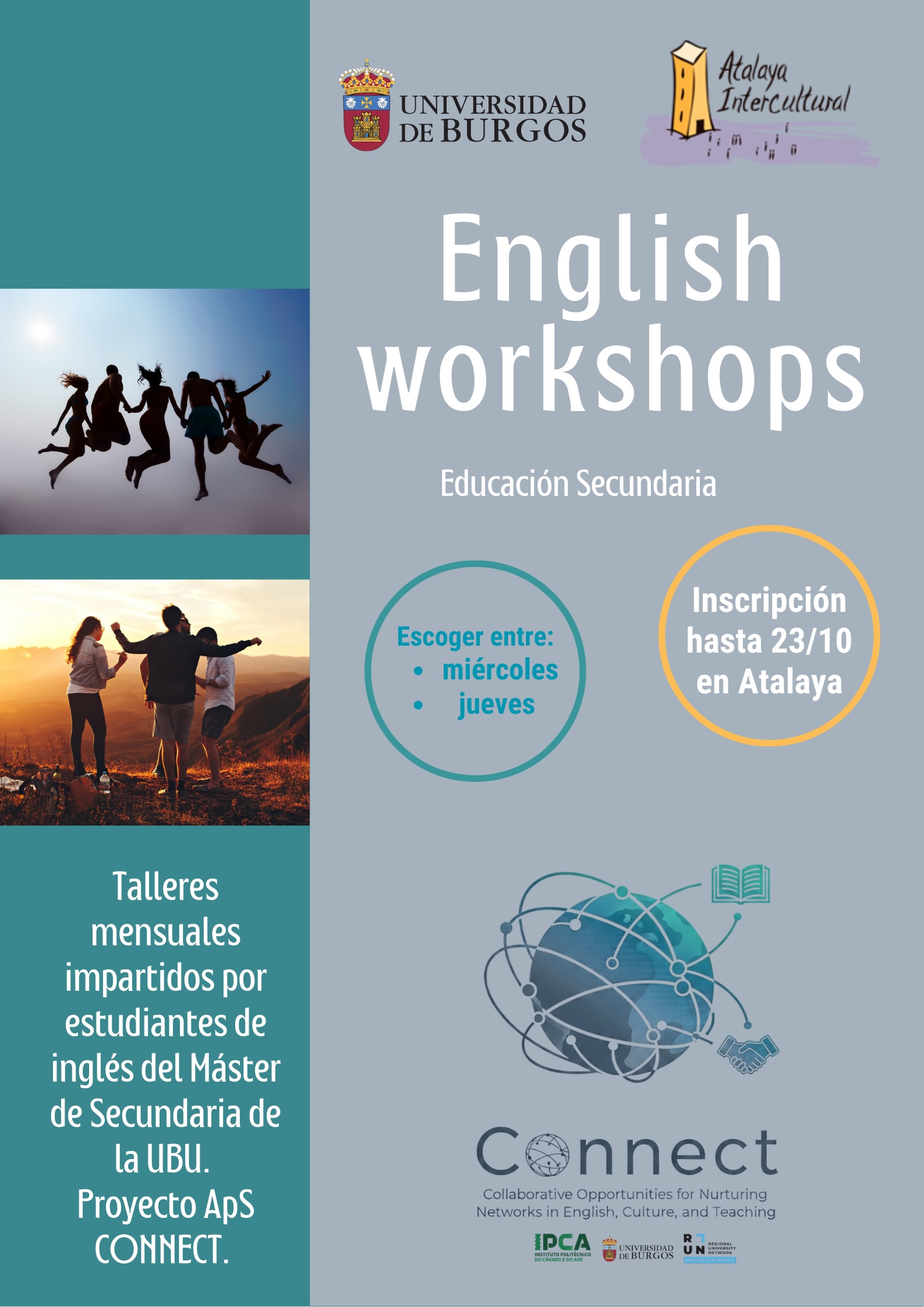 Estudiantes del Máster Universitario en Profesor de Educación Secundaria Obligatoria y Bachillerato, Formación Profesional y Enseñanza de Idiomas están desarrollando e implementando talleres de lengua inglesa para el alumnado de Secundaria en la asociación burgalesa Atalaya Intercultural.