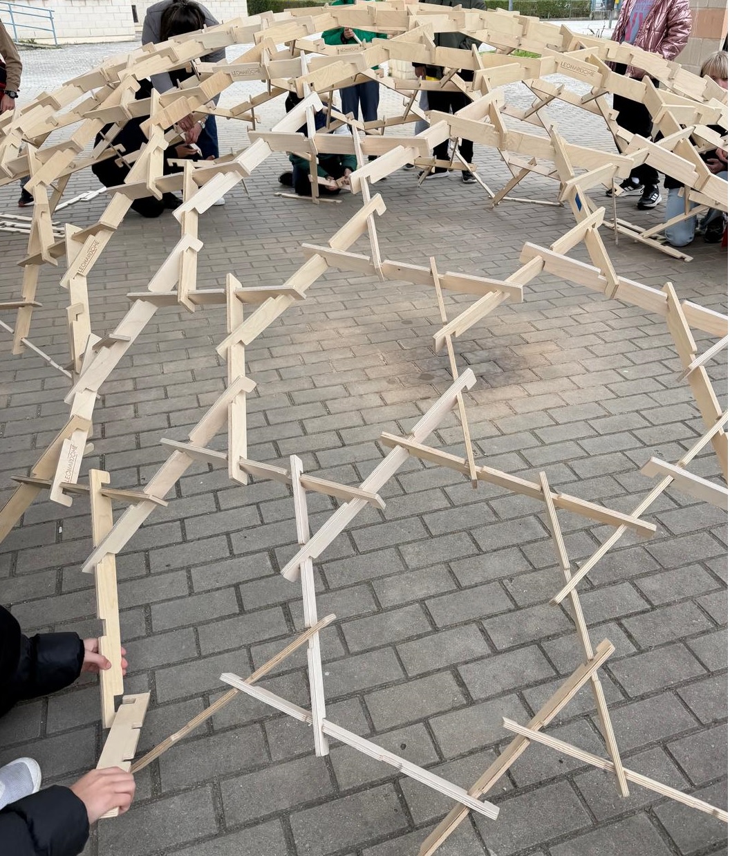 La iniciativa, desarrollada en el centro educativo Miguel Delibes, ha permitido a los participantes sumergirse en el aprendizaje activo a través de la construcción de estructuras inspiradas en los diseños del inventor renacentista Leonardo Da Vinci. Durante las sesiones, el alumnado de 6º de Educación Primaria han trabajado en equipo para levantar diferentes tipologías de cúpulas utilizando exclusivamente piezas de madera diseñadas para ensamblarse entre sí, sin necesidad de elementos de fijación adicionales.