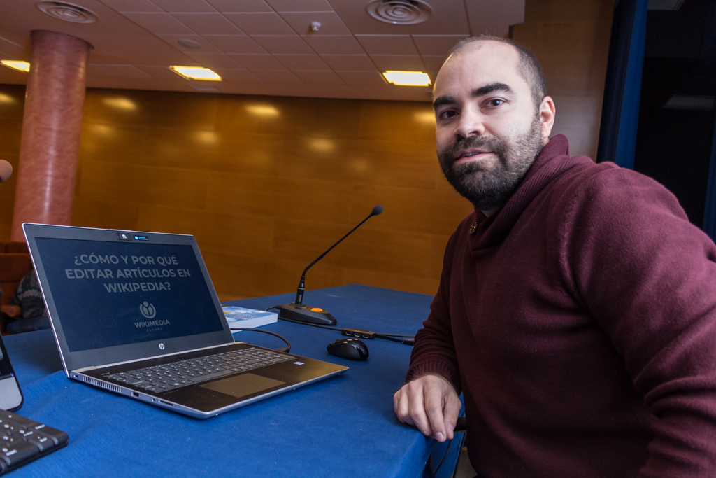 La jornada se inició con la ponencia del responsable de Wikimedia España Rubén Ojeda. Ojeda explicó a los estudiantes qué es Wikipedia, cómo funciona, su historia, normas políticas internas y las pautas a seguir a la hora de subir contenidos. El responsable de Wikimedia dijo que la comunidad que edita es estable pero el número de contenidos aumenta a gran velocidad, por lo que wikimedia requiere incrementar la “cantera de redactores” para labores de mantenimiento y corrección.