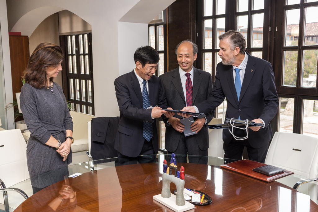 Shan Tirui, rector de la Universidad china Binhai University, se ha entrevistado con el rector de la Universidad de Burgos, Manuel Pérez Mateos, y la vicerrectora de Internacionalización, Movilidad y Cooperación, Elena Vicente. Sendas instituciones académicas tienen suscrito un convenio de colaboración y firmado un Programa de Movilidad Académica.