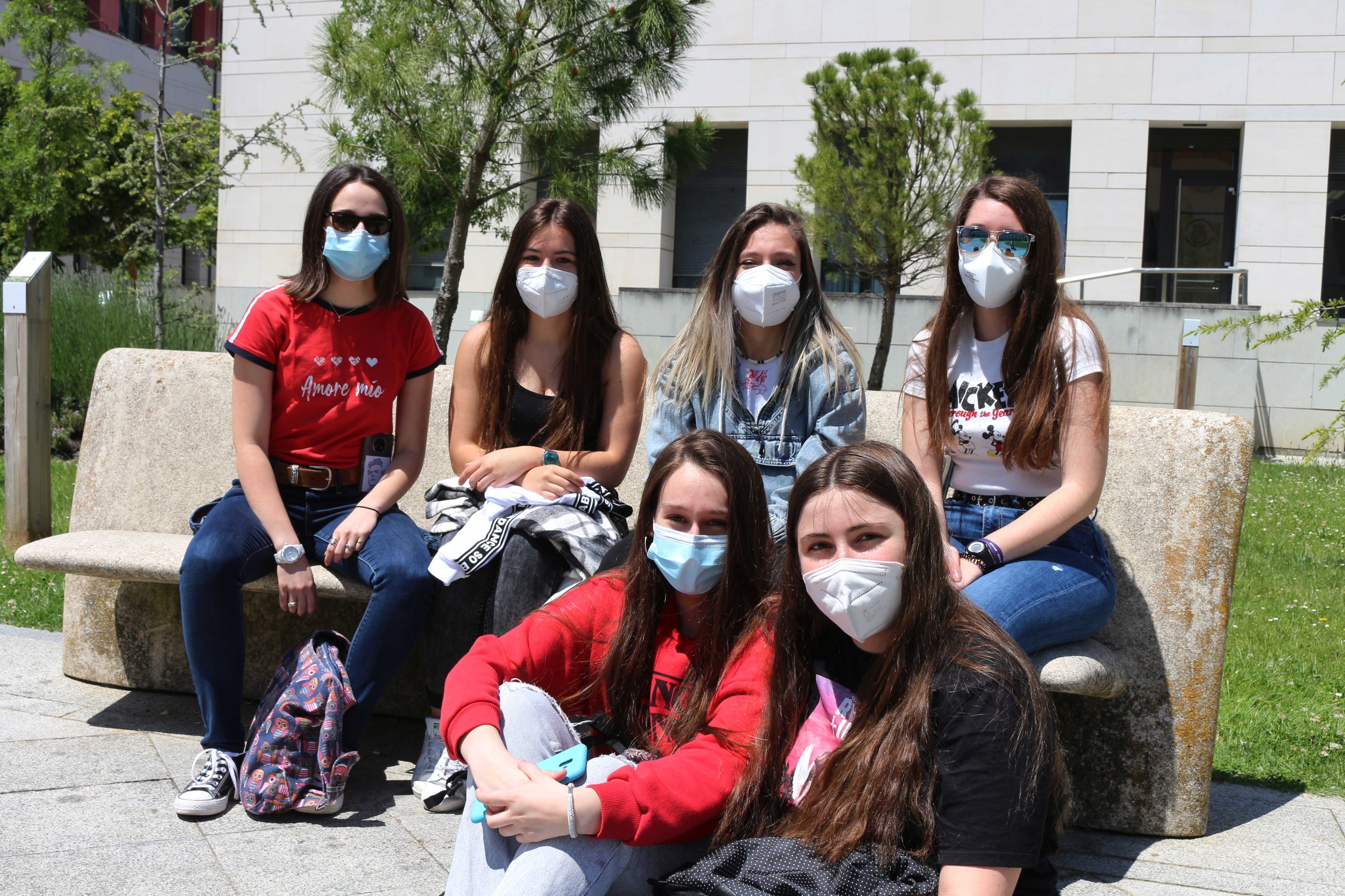 Tras la primera sesión de la EBAU los futuros universitarios han aprovechado para relajarse y reponer fuerzas antes de la sesión de la tarde, repartidos por el entorno del campus universitario del Hospital del Rey.