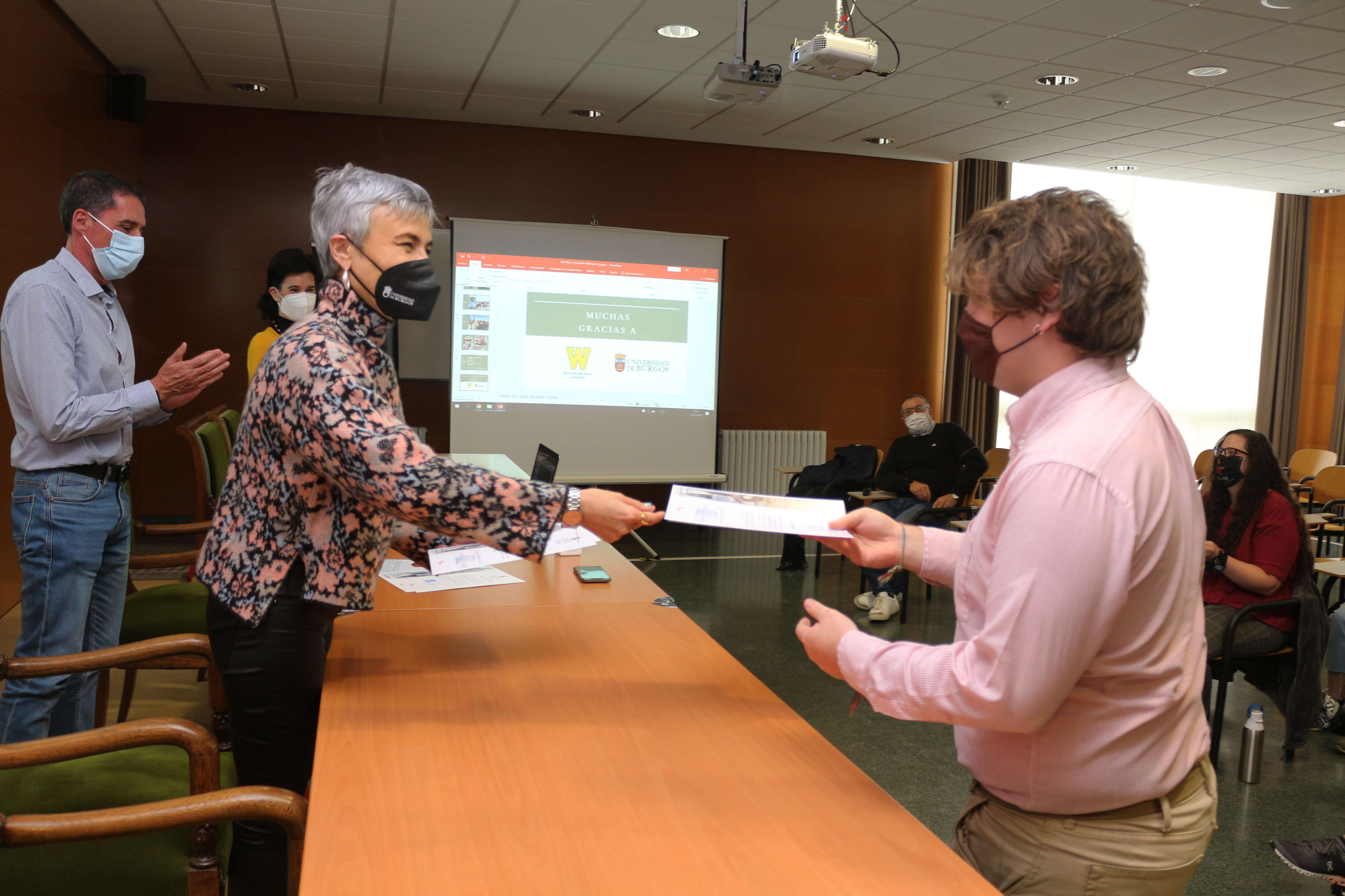 La vicerrectora de Internacionalización y Cooperación, Ileana Greca Dufranc, y el director del Centro Internacional del Español de la UBU, Raúl Urbina Fonturbel, han clausurado esta mañana el curso "Español y Cultura Hispánica" en el que han participado un grupo de ocho estudiantes de la Western Michigan University (WMU) durante los últimos 3 meses.