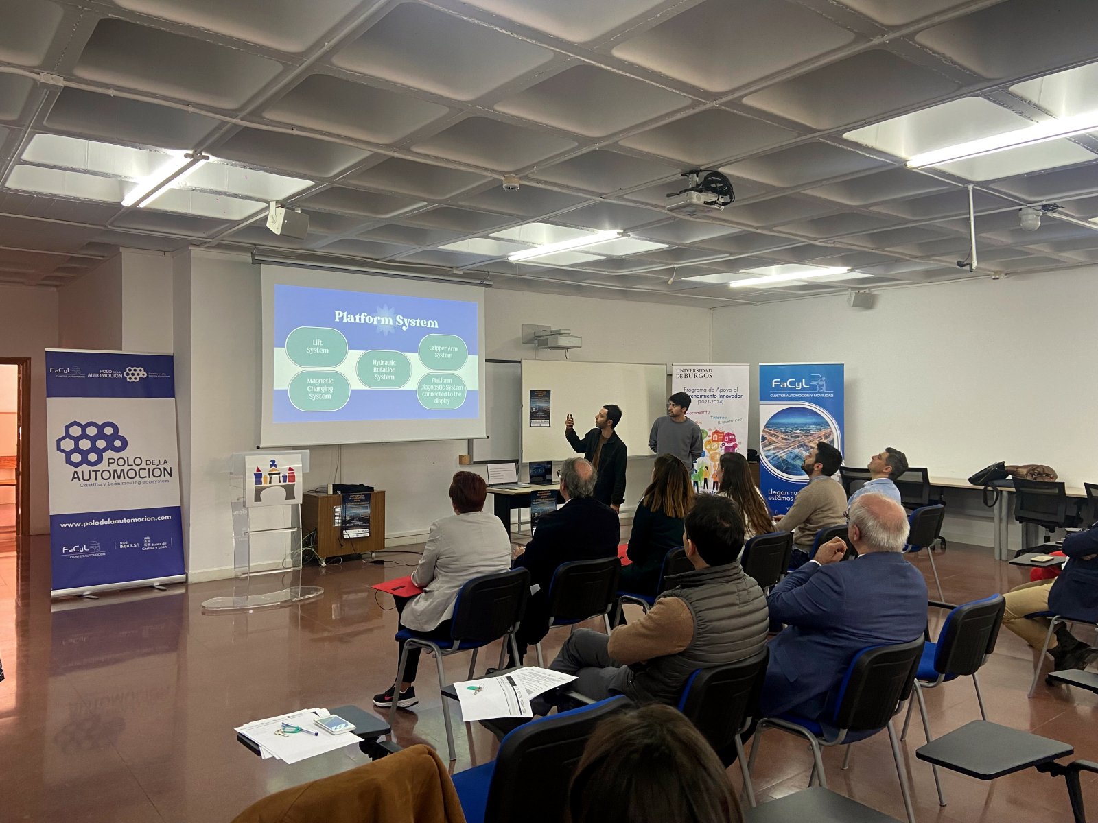 El jurado estuvo integrado por Luis Leal, responsable de Visión Tecnológica y Ecosistema de Socios en la Dirección de Innovación y Sostenibilidad en Antolin; Miguel Ruano, coordinador del Laboratorio de Innovación en MICHELIN Aranda; Álvaro Herrero, manager eléctrico dentro del área de Ingeniería de Proyectos en ABB; Sandra Serrano, embajadora de Polo de la Automoción; Silvia López, responsable de Proyectos en FACYL- Clúster de Automoción y Movilidad de Castilla y León; Virginia Santamaría, directora territorial de ICE en Burgos; y Jesús Enrique Sierra, profesor titular UBU en área de Ingeniería de Sistemas y Automática.