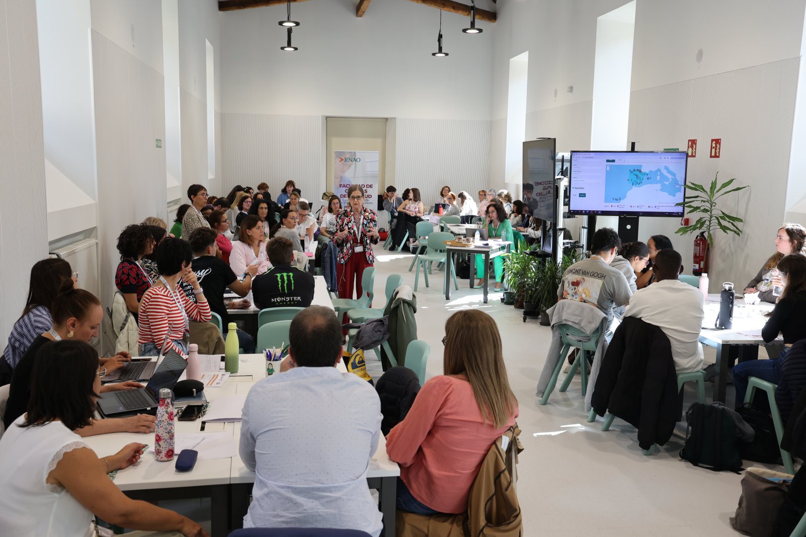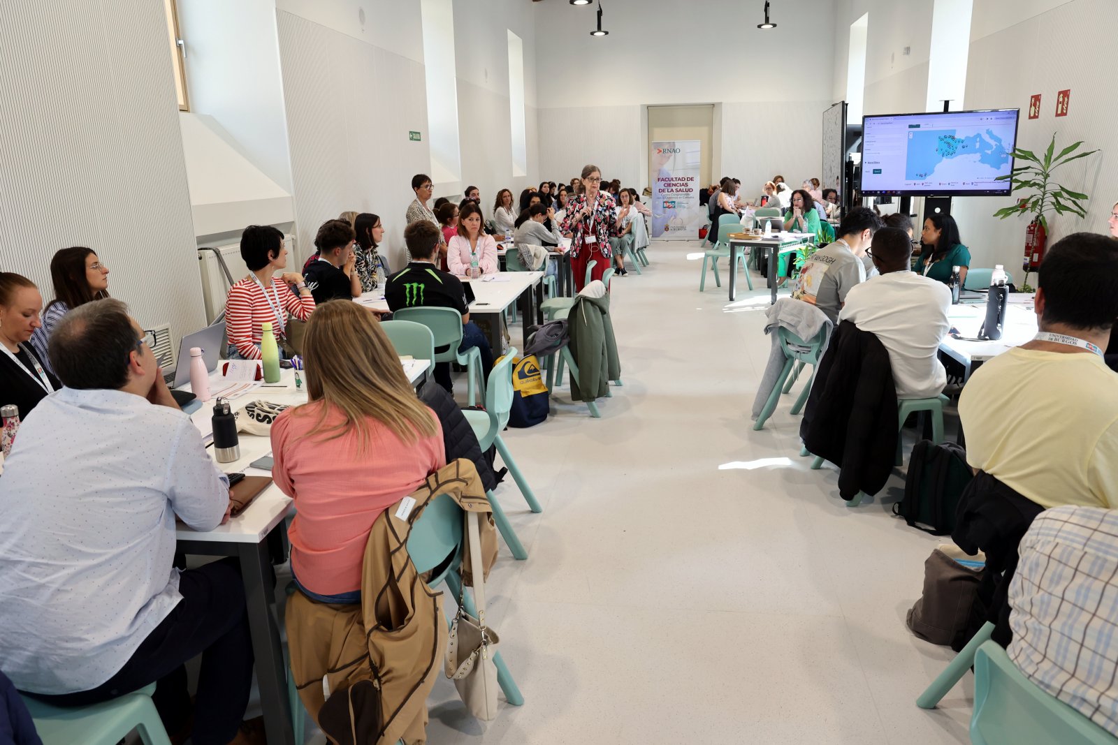 Este evento, realizado en el recientemente inaugurado Aulario 1, ha congregado a cerca de 100 personas - alumnado y profesorado del Grado en Enfermería, profesionales de enfermería de distintas instituciones, principalmente del HUBU y de Atención Primaria, docentes de otras universidades e instituciones sanitarias y representantes del Grupo Investén-Unidad de Investigación en Cuidados y Servicios de Salud, dependiente del Instituto de Salud Carlos III-, interesadas todas ellas en la mejora de la calidad de los cuidados de salud y partes esenciales en este proyecto transformador.