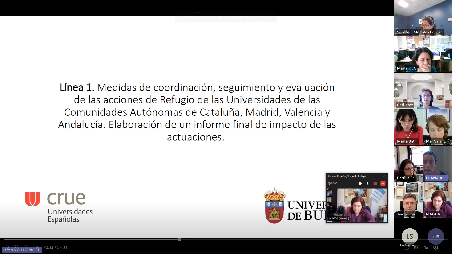 El Centro de Cooperación y Acción Solidaria de la Universidad de Burgos ha organizado hoy la primera reunión del Grupo de Trabajo para el estudio sobre "Medidas de coordinación, seguimiento y evaluación de las acciones realizadas por las Universidades a las que se han concedido las subvenciones reguladas en el Real Decreto 985/2022 en el ámbito del Plan de Acción Universidad – Refugio", financiado a través de la CRUE con una aportación de 160.000 euros procedente del Ministerio de Universidades.