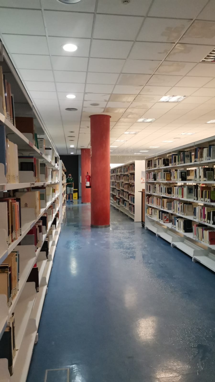 Nueve decenas de libros, de entre los 150.000 volúmenes que alberga la Biblioteca de la UBU, además de varias placas de yeso de falsos techos e innumerables horas de trabajo sin descanso del personal de la Oficina Técnica, de los servicios de limpieza y seguridad y de los decanatos y EPS son las consecuencias más reseñables de la tormenta de agua y granizo que, el pasado viernes, tuvo su epicentro en el Campus del Hospital del Rey de la Universidad de Burgos.